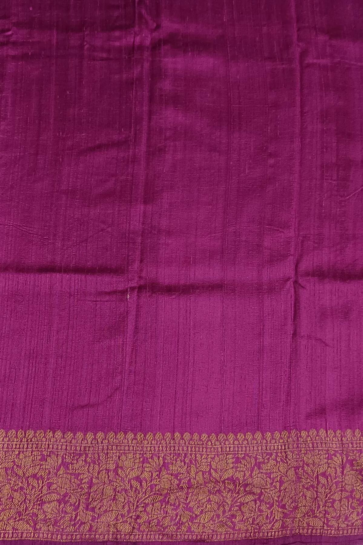 Description : Handloom Banarasi katan pure silk saree in maroon in dupion finish with small motifs . Complemented with  rich pallu & border in antique zari  and contrast blouse in purple.