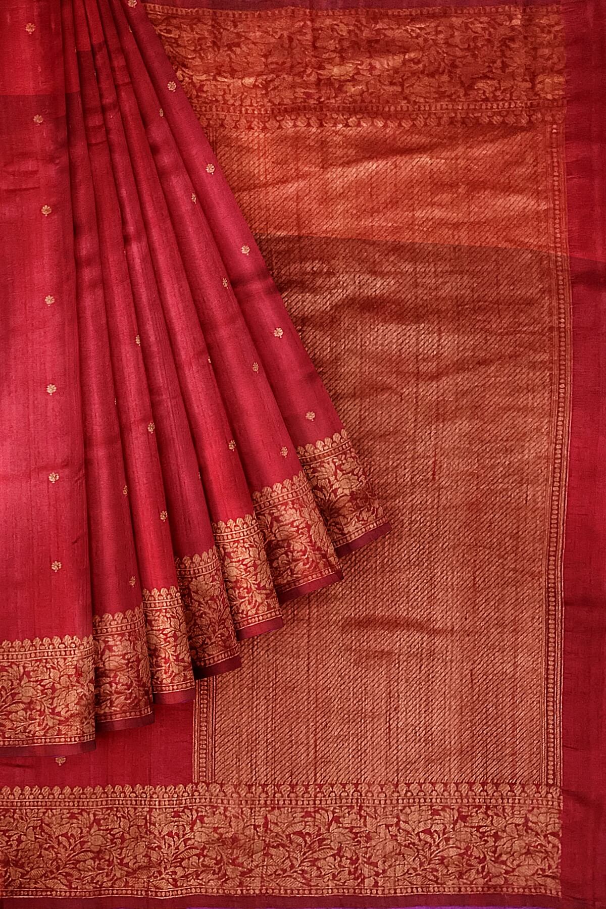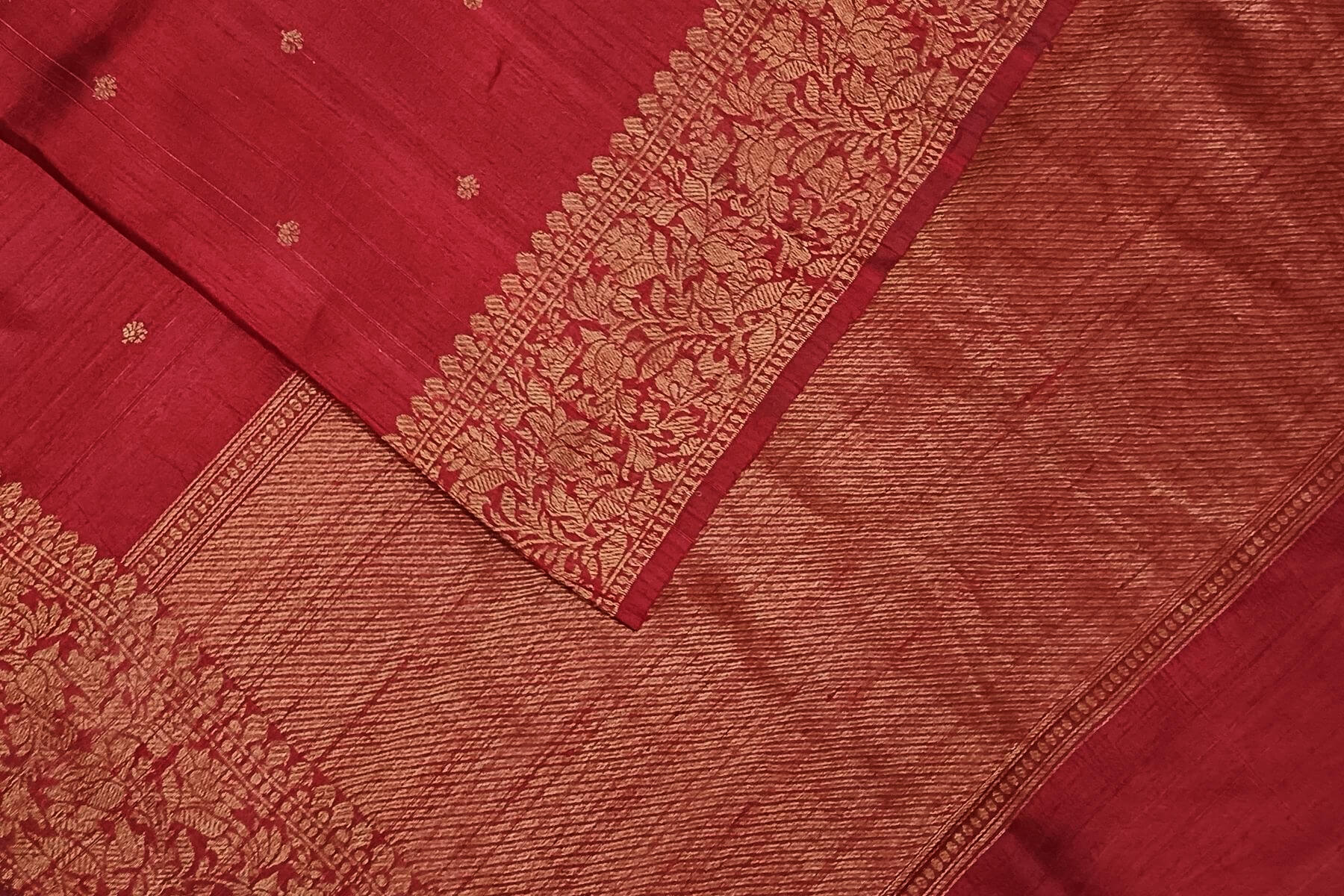 Handloom Banarasi katan pure silk saree in maroon in dupion finish with small motifs .