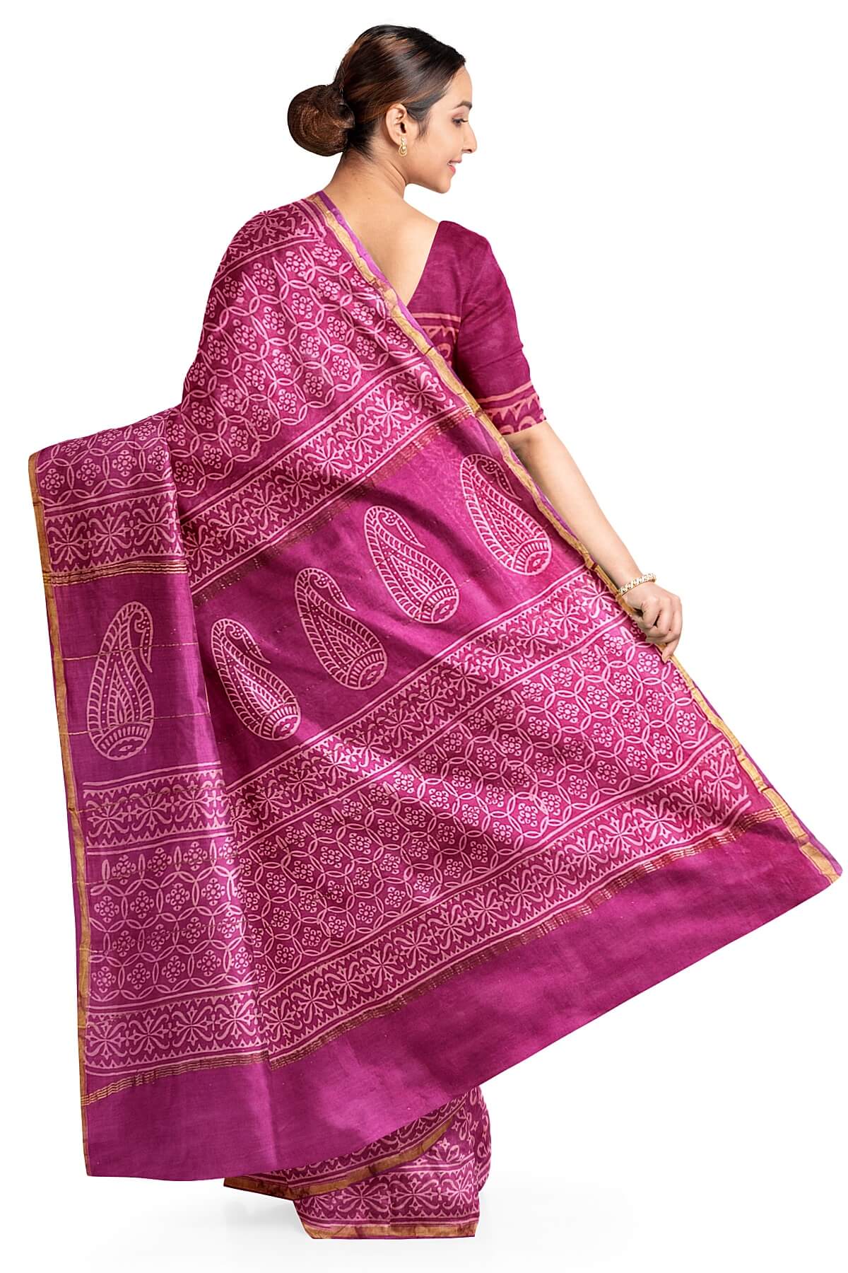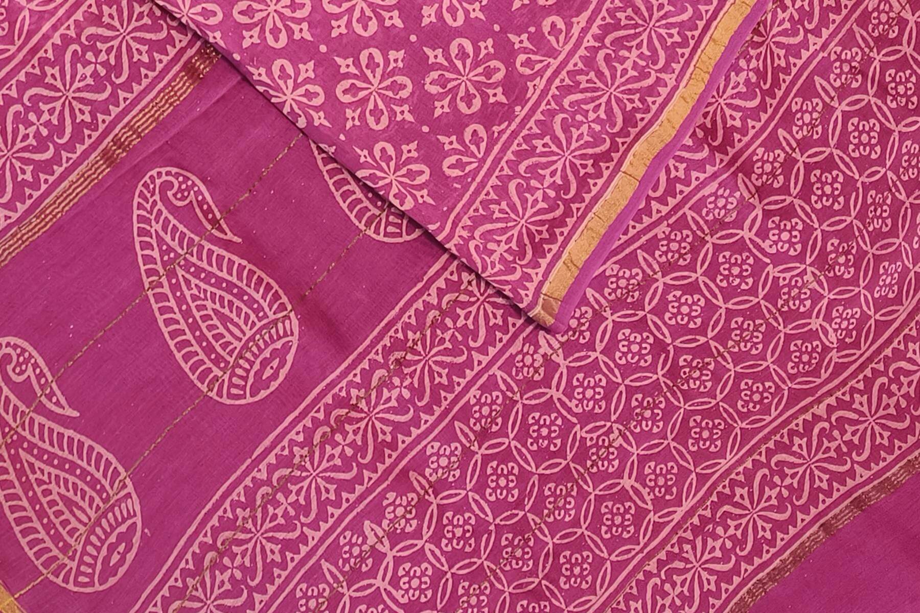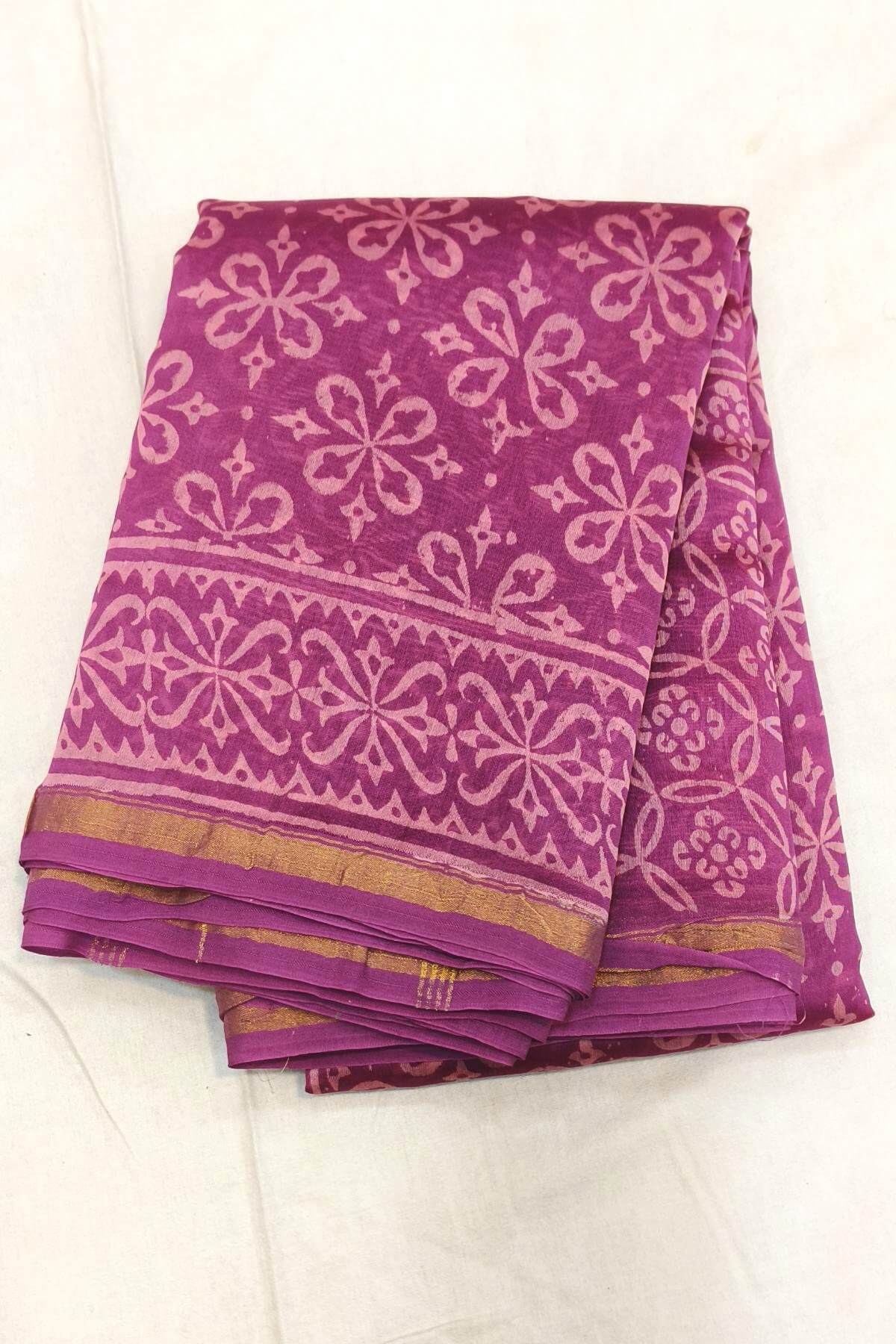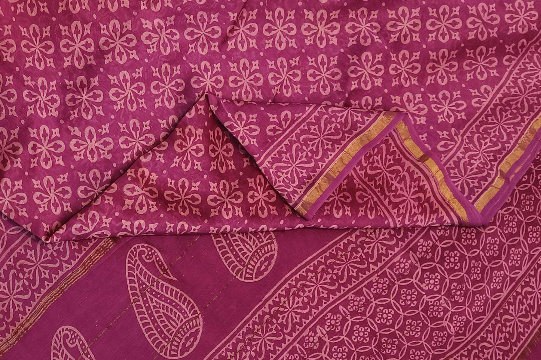 Bagru hand block print on Chanderi silk cotton saree in purple