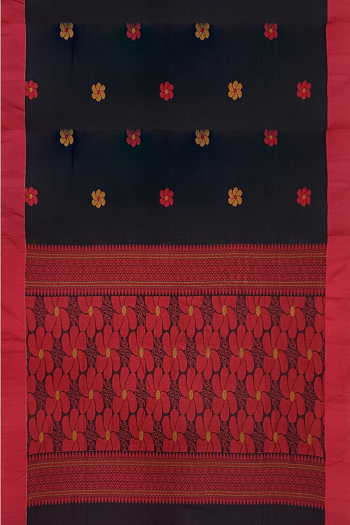 Description : Handloom soft cotton saree with floral motifs in black with jamdani pallu