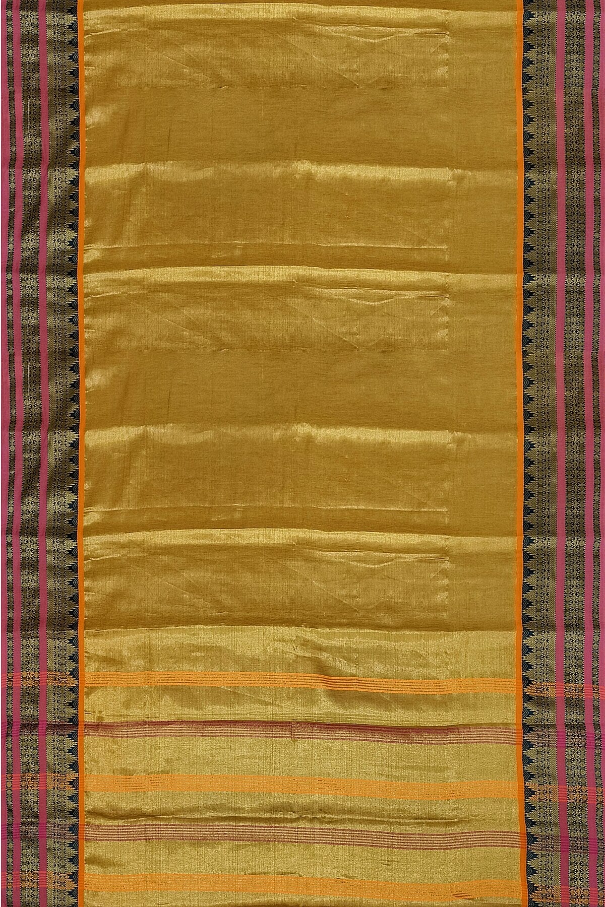 Description : Soft tissue cotton saree in gold with temple border