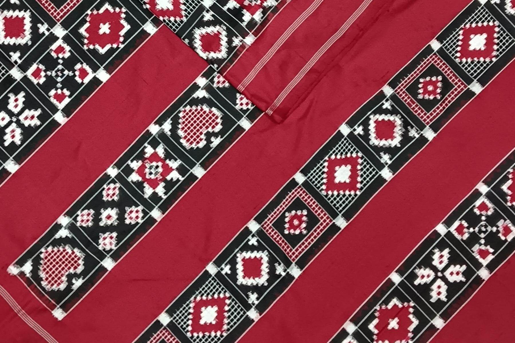 Ikat is a weave and not a print . This saree is handwoven double ikat weave.