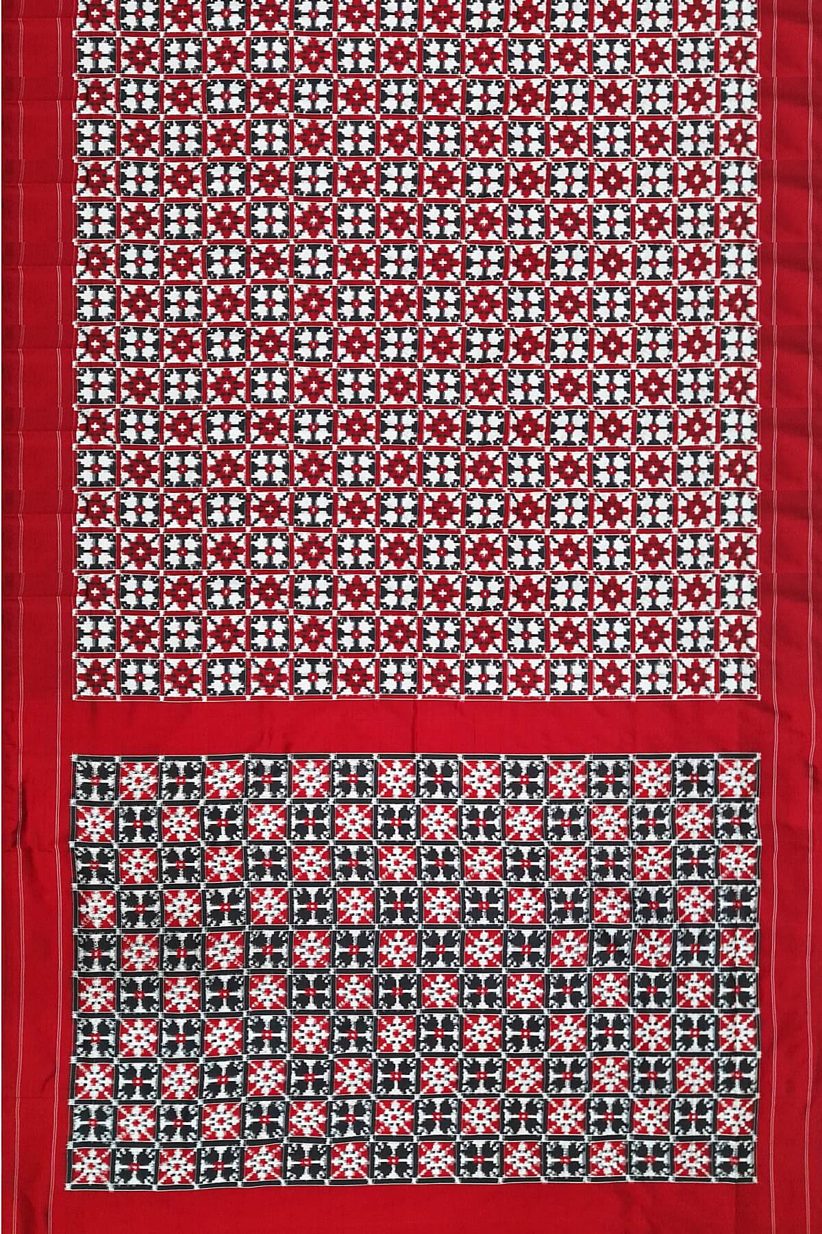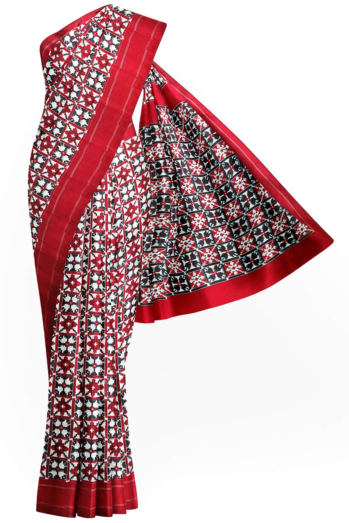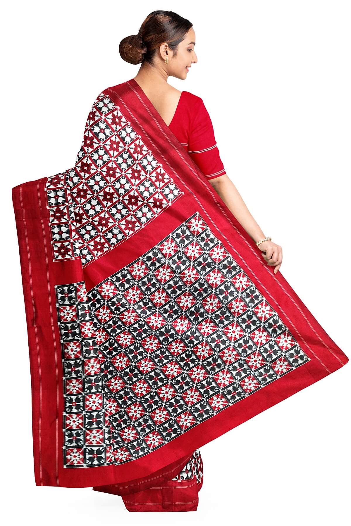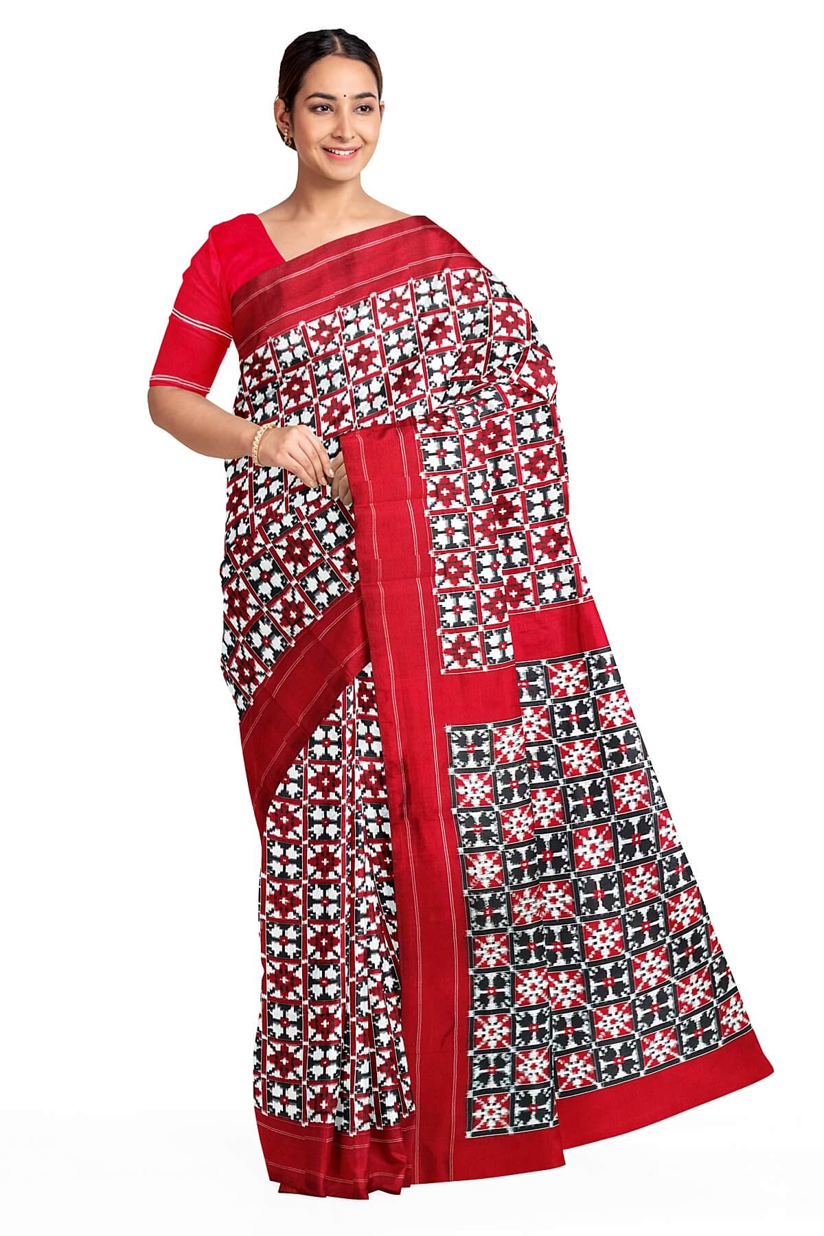 Description: Gorgeous double Ikat telia pure silk saree in floral motif in square and a contrast pallu