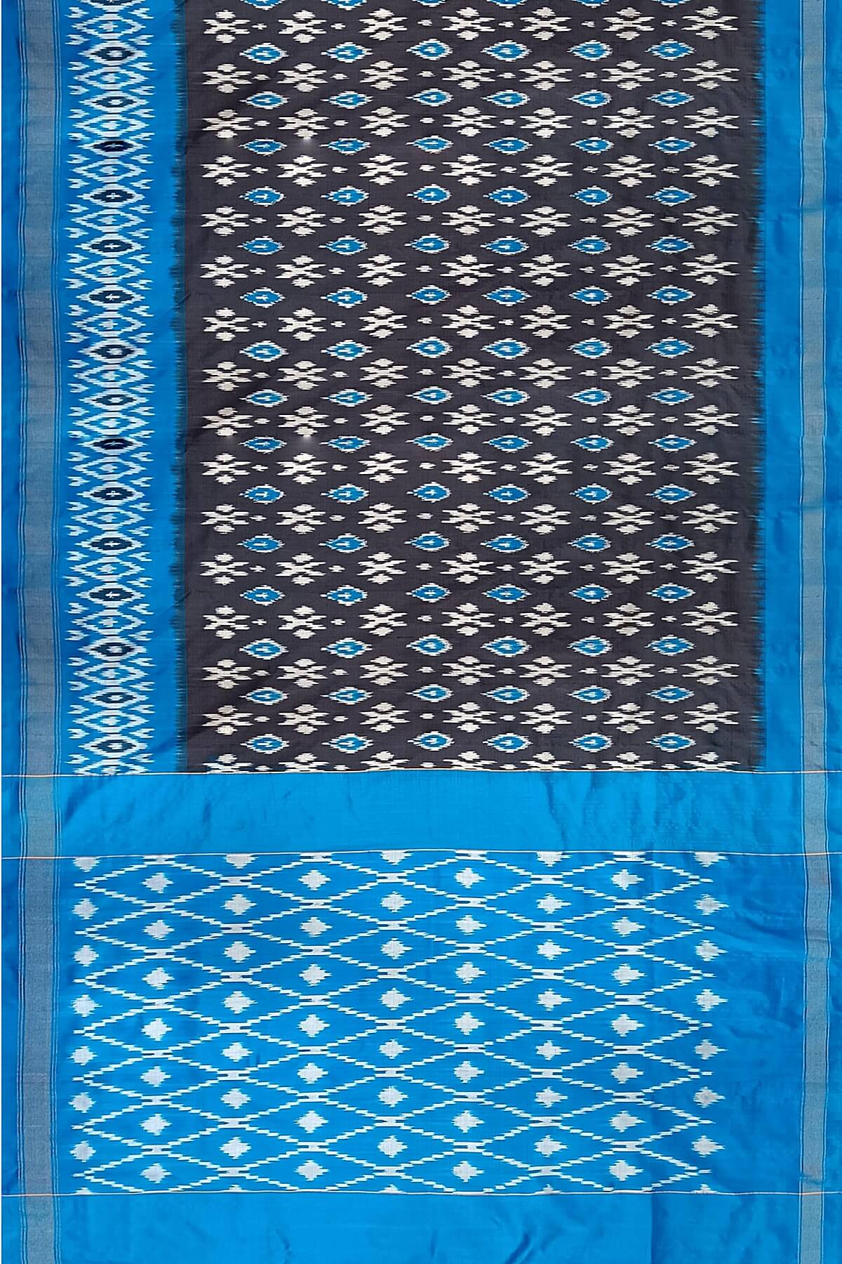 Description : Handwoven ikat pure silk saree in grey with absract pattern on the body and a skirt border