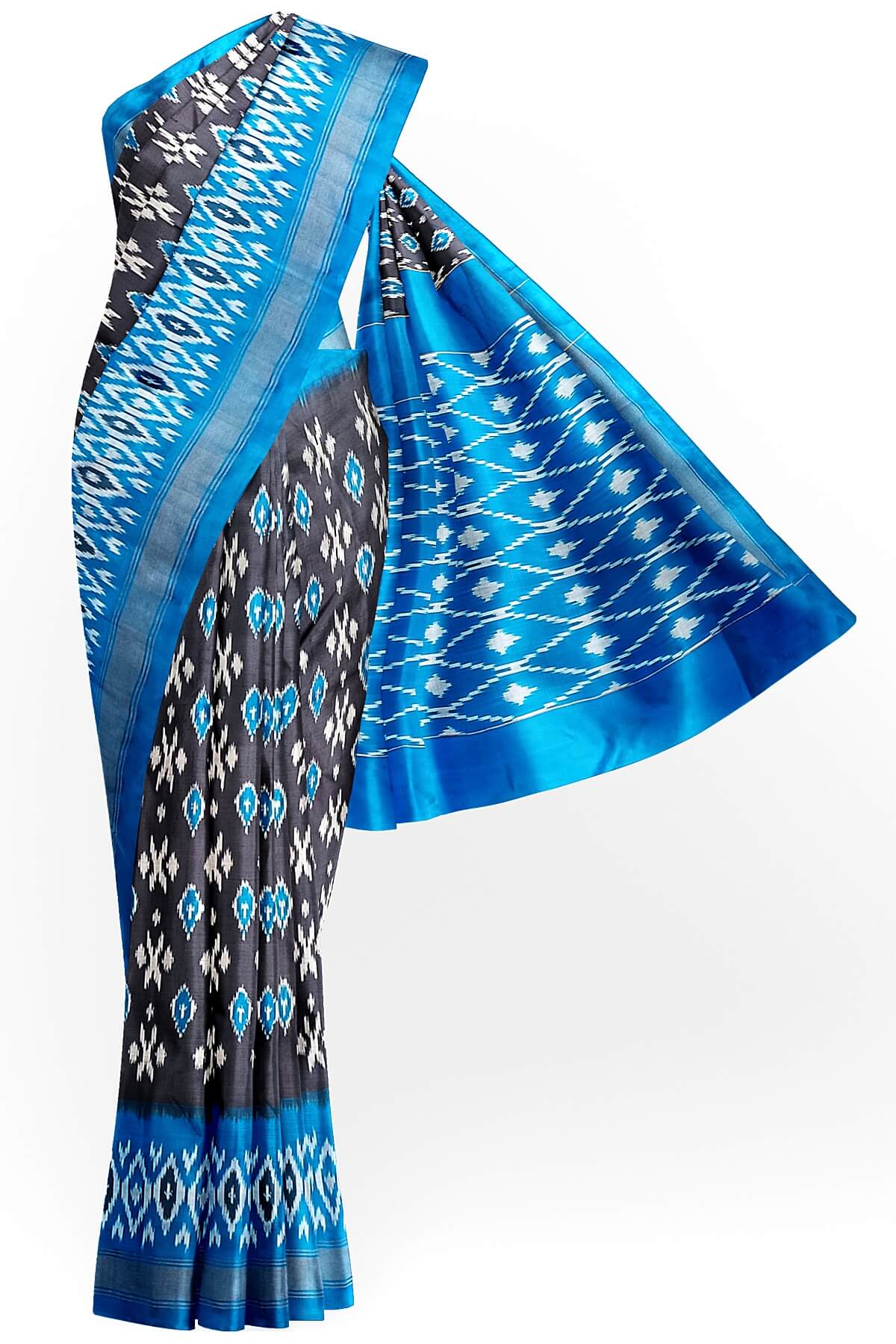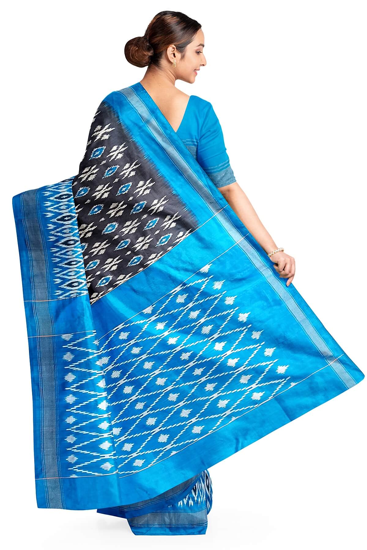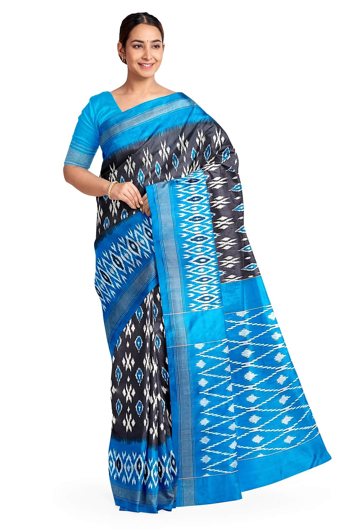 Ikat is a weave and not a print . This saree is handwoven ikat weave.