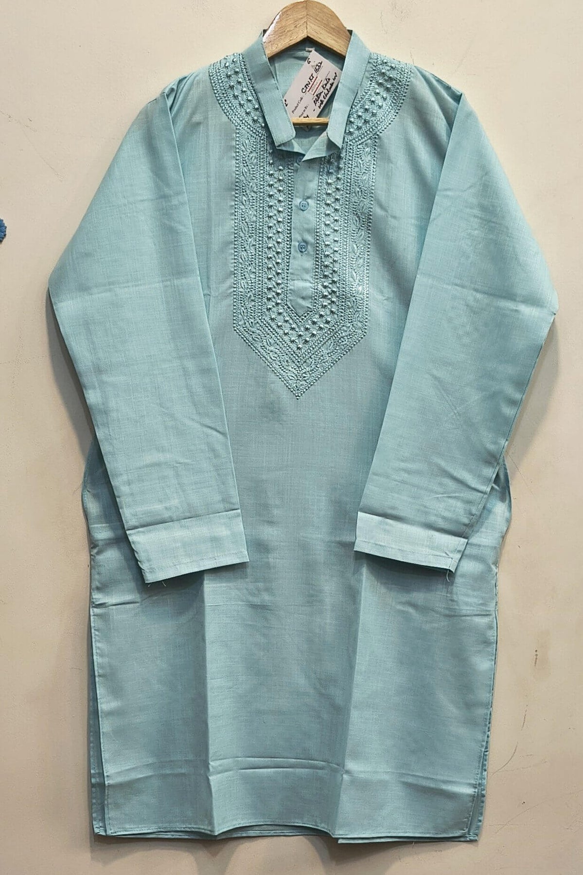 Description : Cotton kurti with Lucknowi chikan work in sky blue