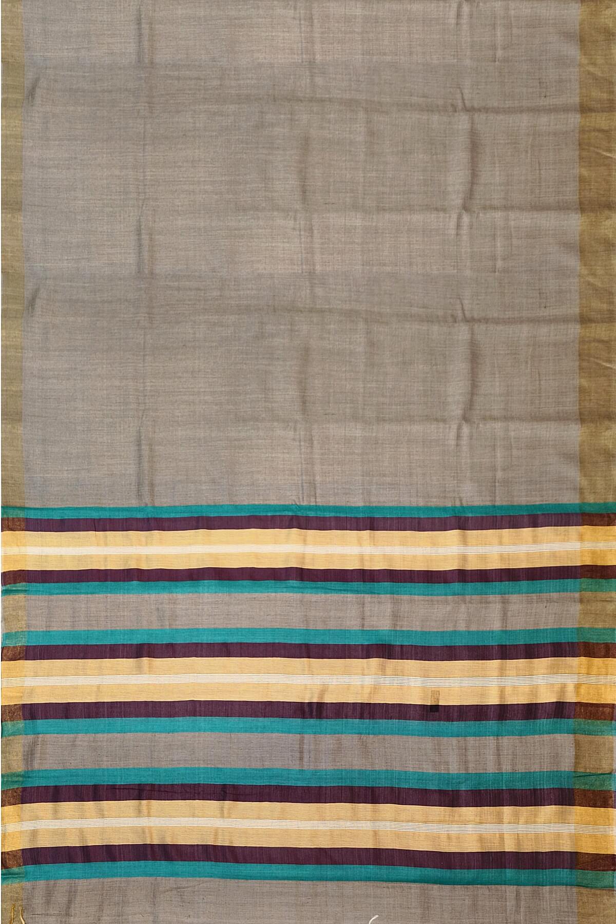Description :  Handloom desi tussar pure silk saree in grey with striped pallu