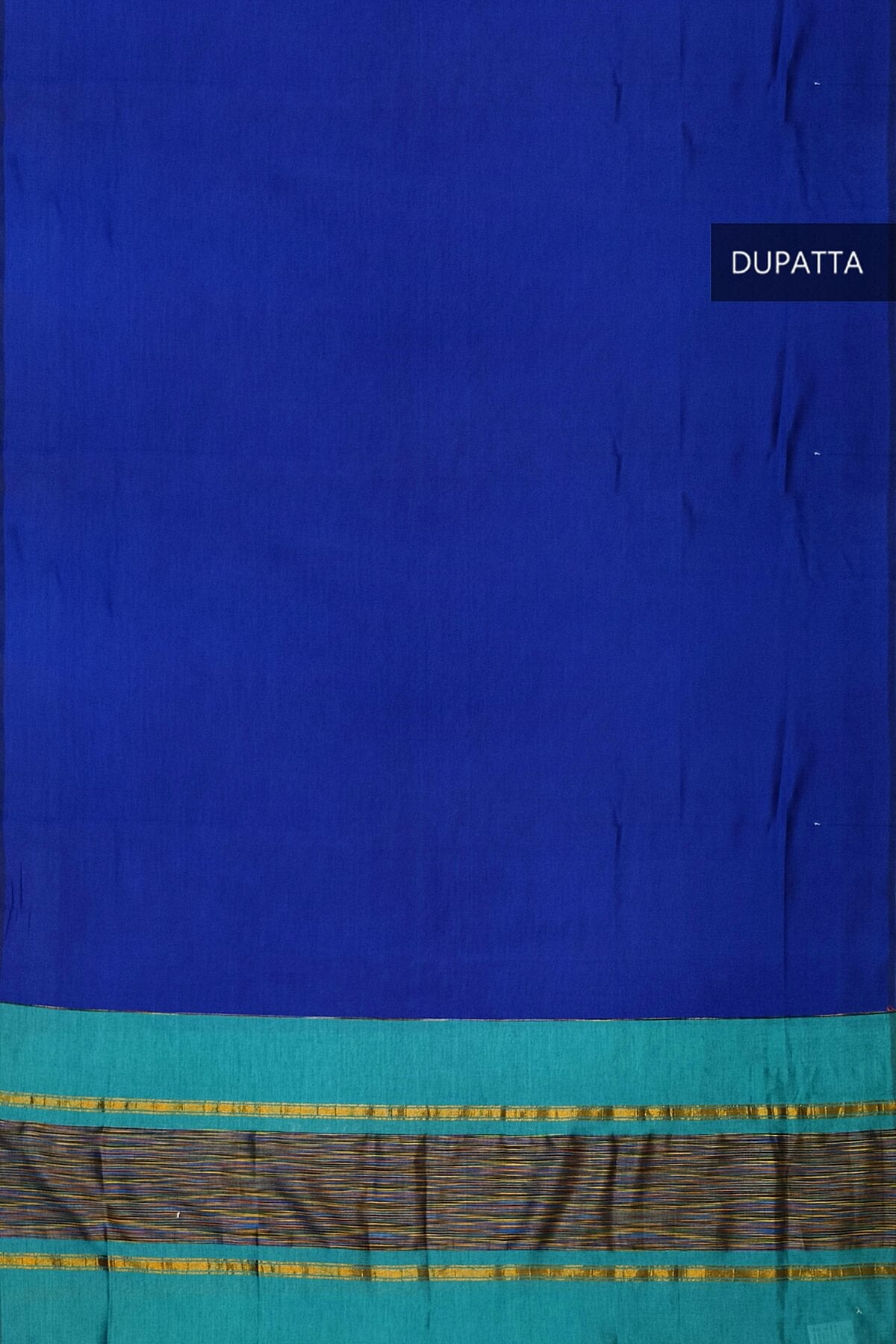 Description : Handloom ikat silk cotton salwar suit material in teal blue
