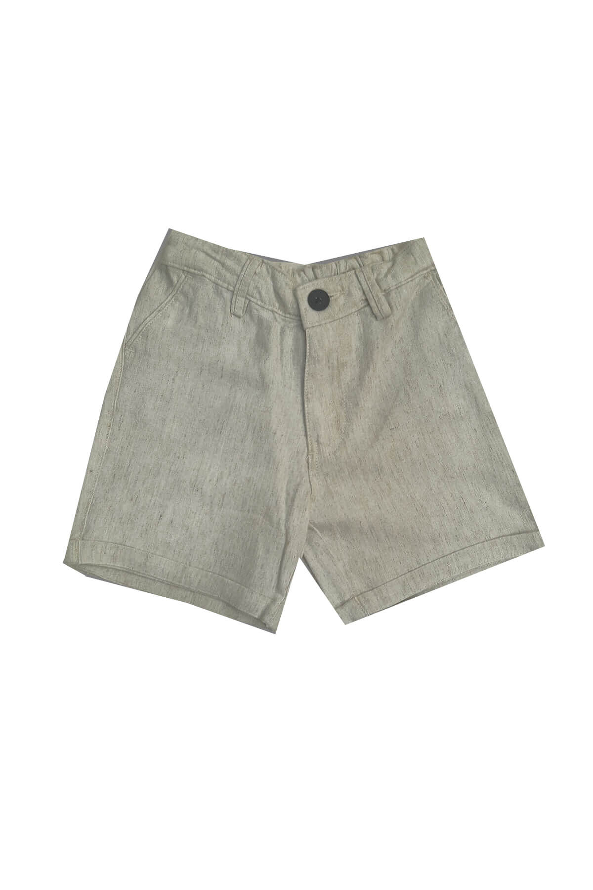 Description : Solid linen shorts with stretchable waist and pockets in off white . Comfortable , breathable and easy to wear
