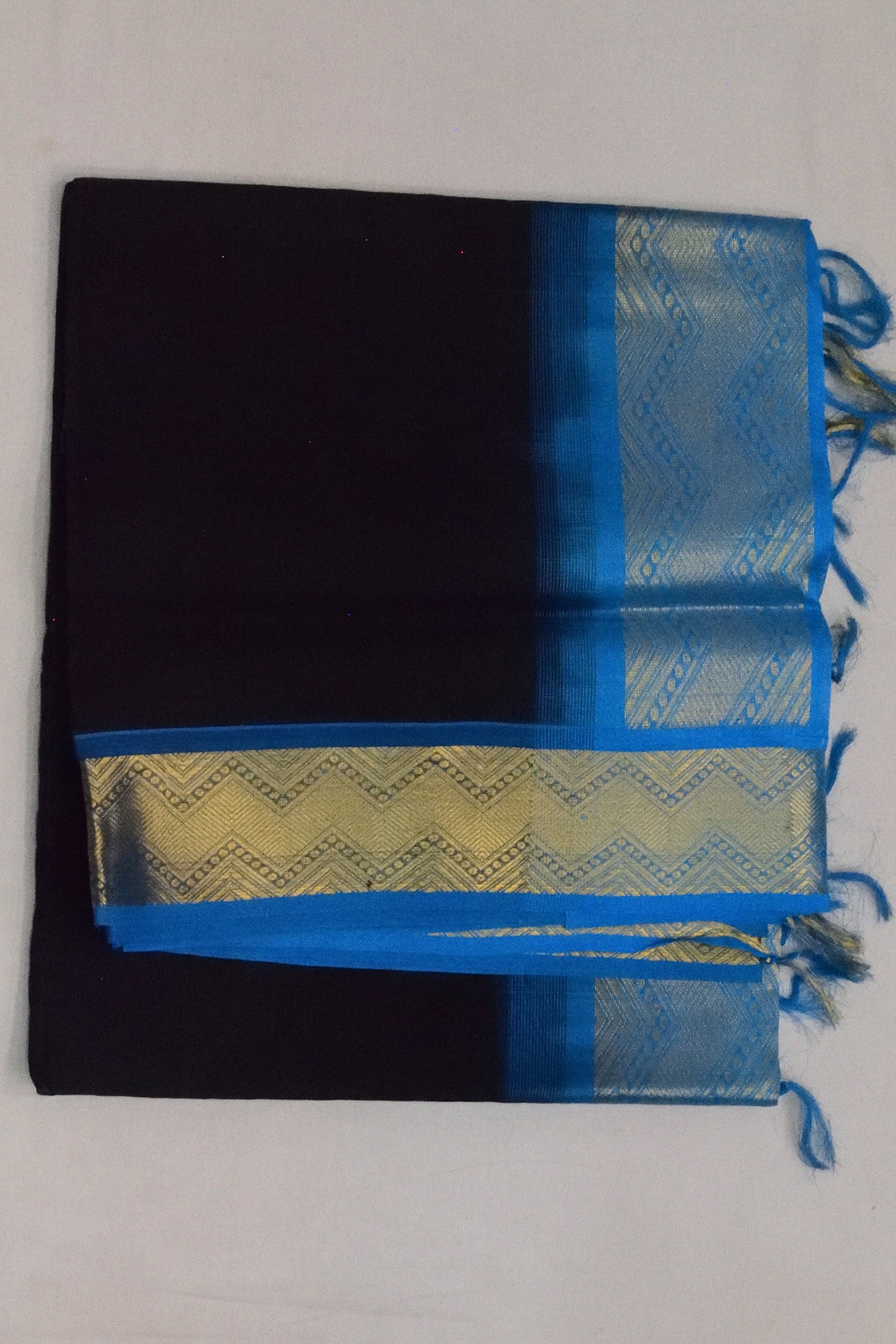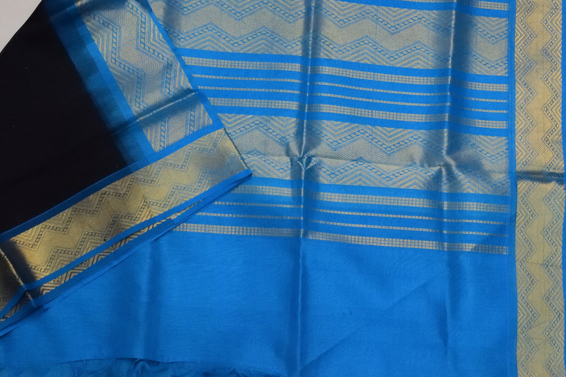 Description : Handloom Kanchi silk cotton saree in black & blue