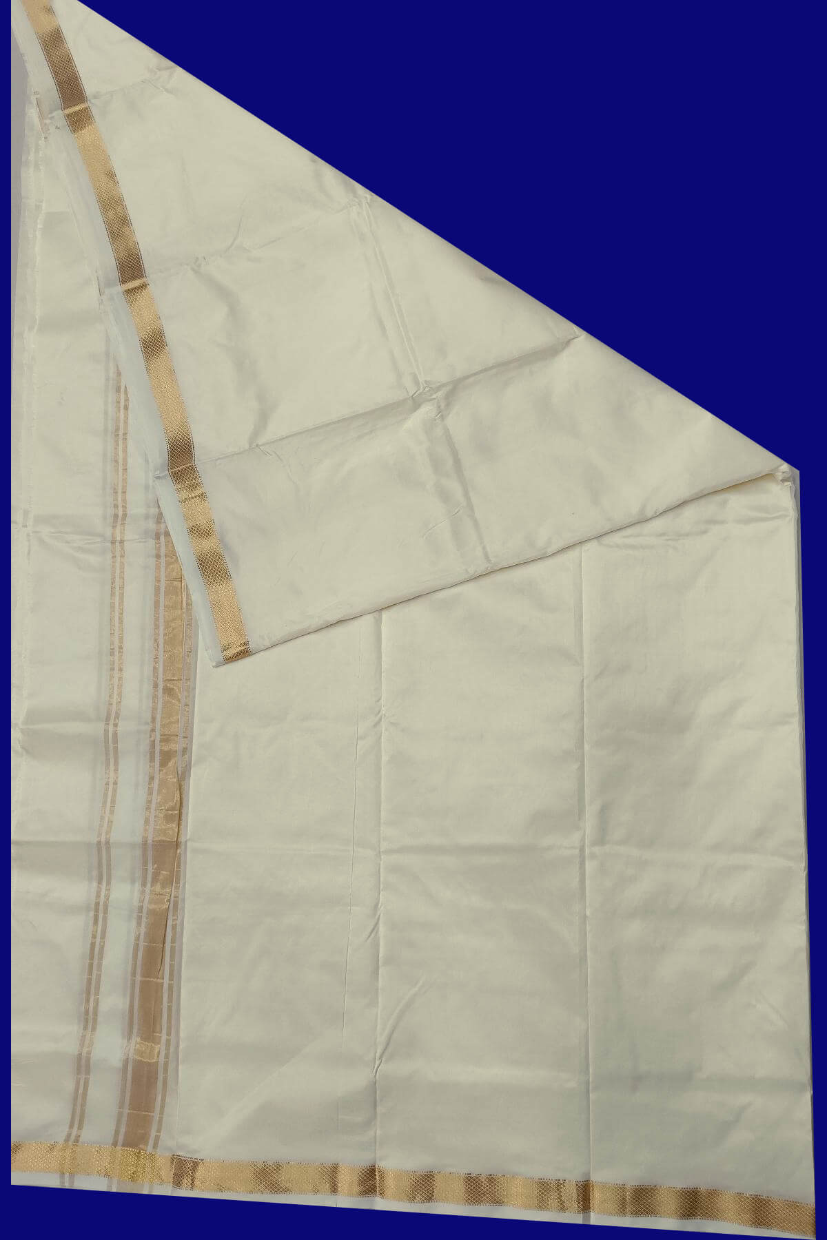 Pure silk Dhoti /Panche and Angavastram/Shalye in off white with 1 inch gold border