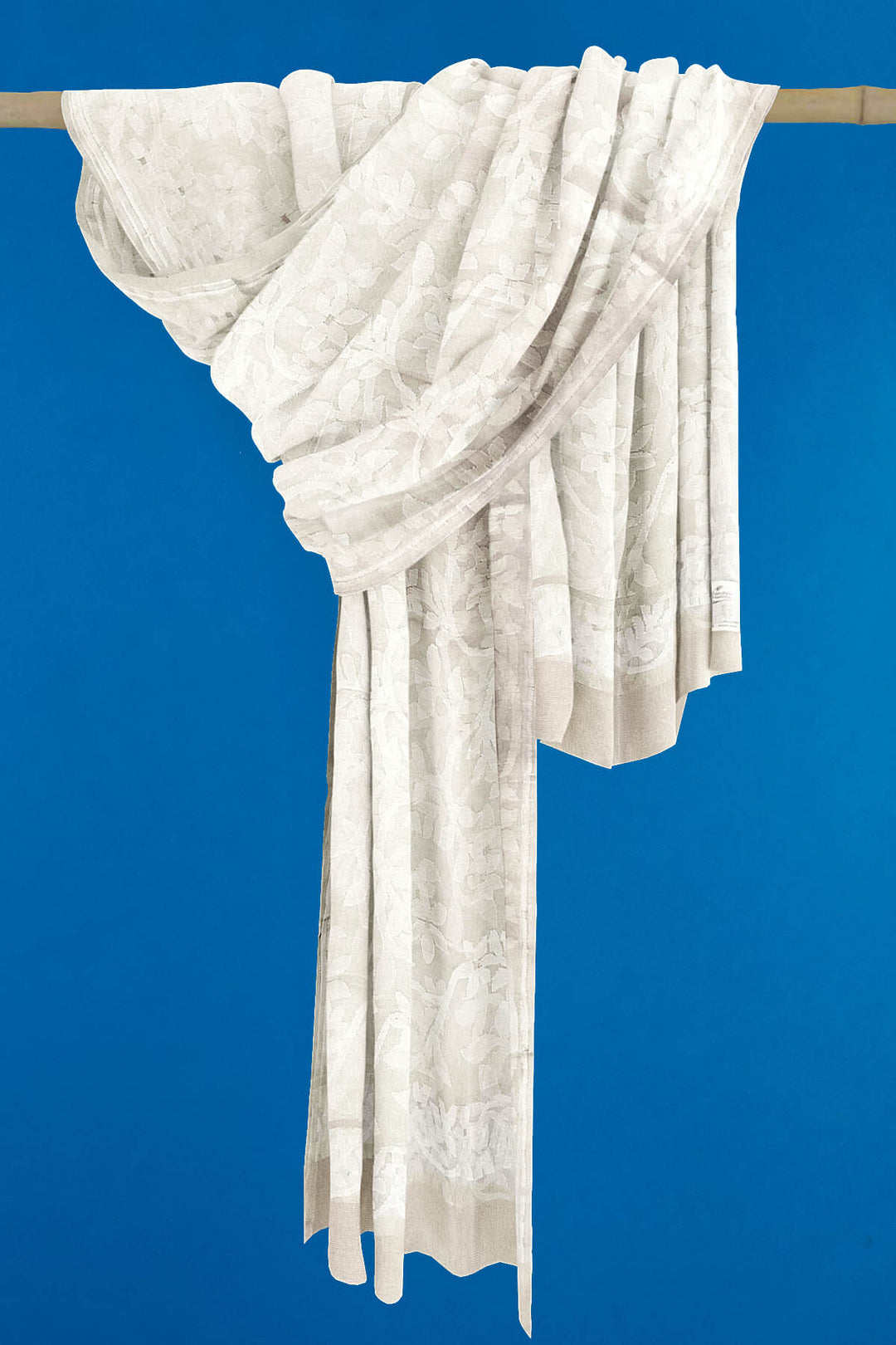 Handwoven Ikkat pure silk dupatta in off white in navratan pattern