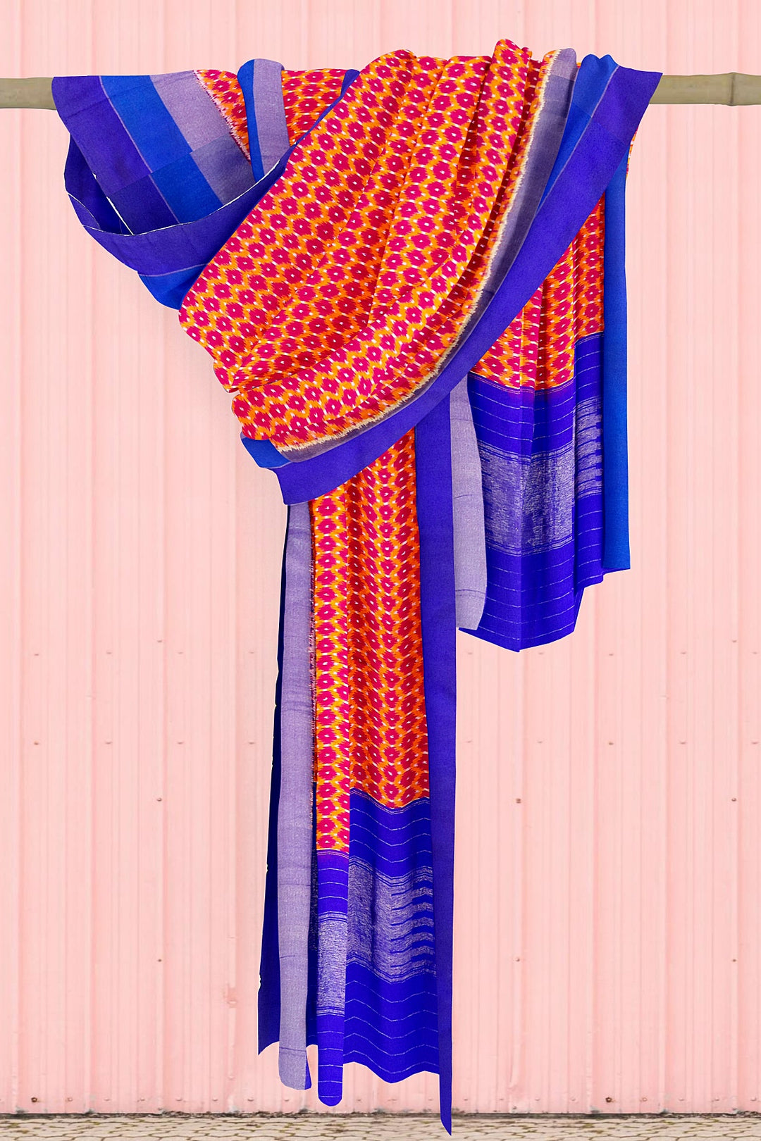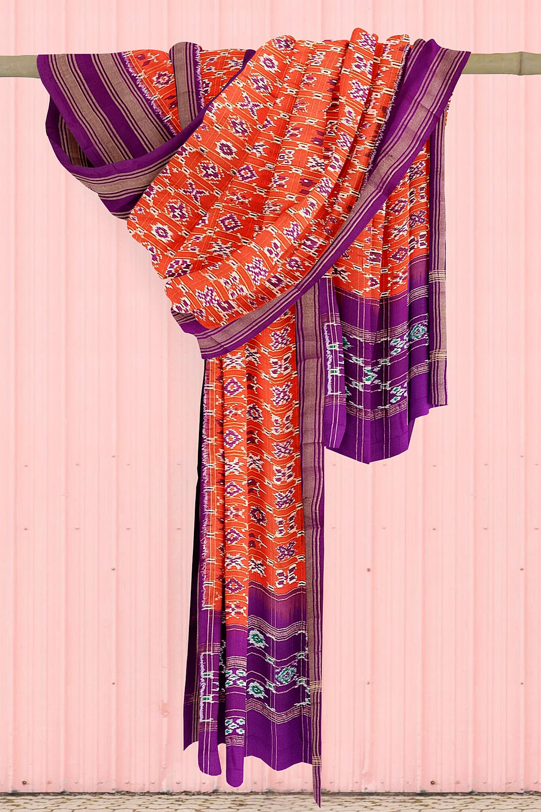Handwoven Ikat pure silk dupatta in orange in diamond pattern