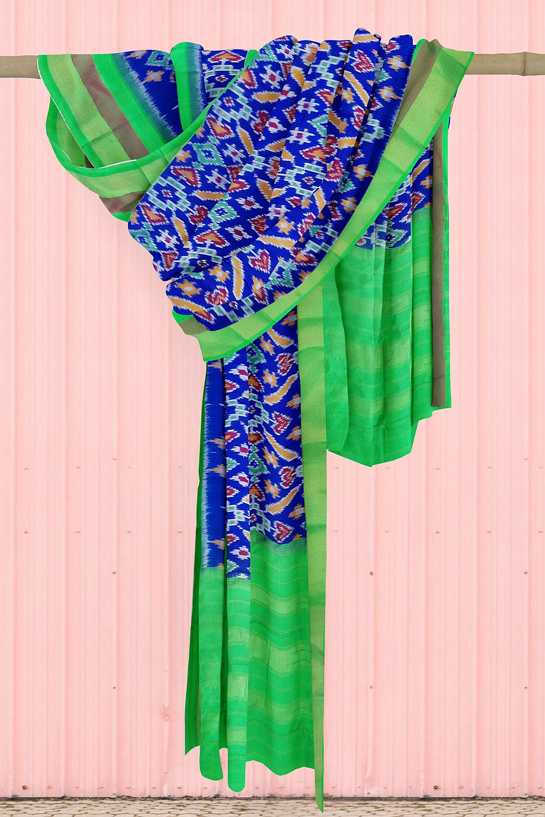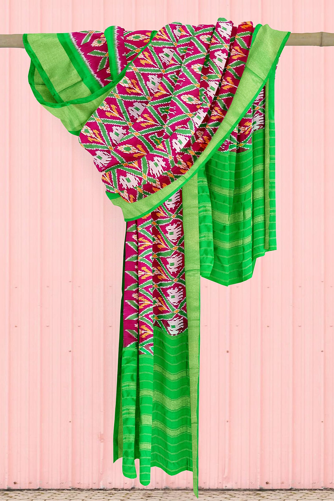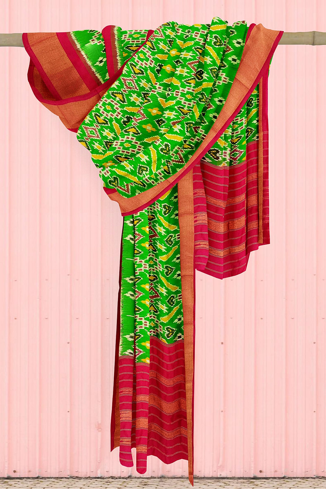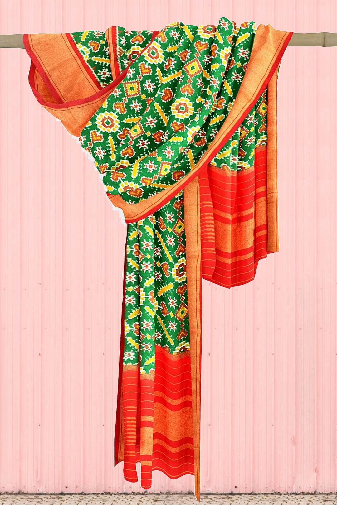Handwoven Ikkat pure silk dupatta in green in pan patola pattern