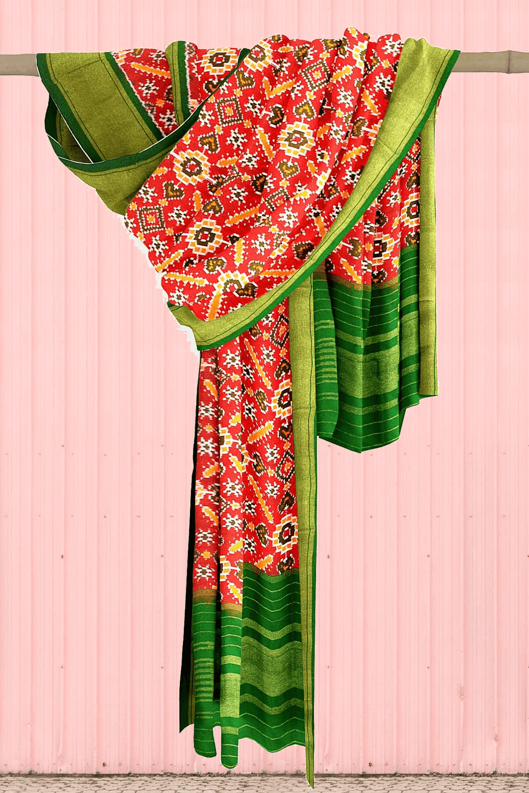 Handwoven Ikkat pure silk dupatta in red in pan patola pattern