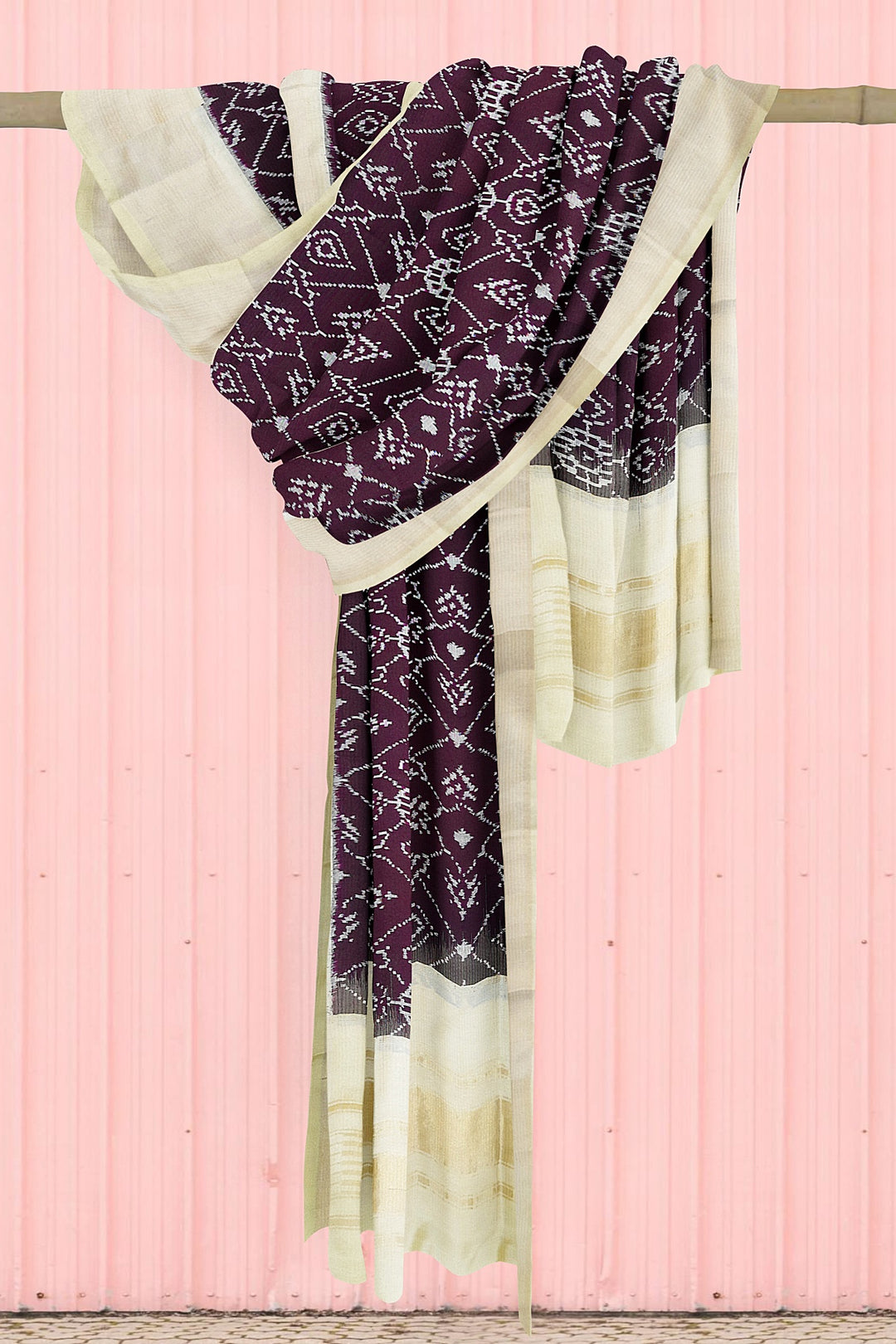 Handwoven Ikat pure silk dupatta in dark purple in pan bhat pattern