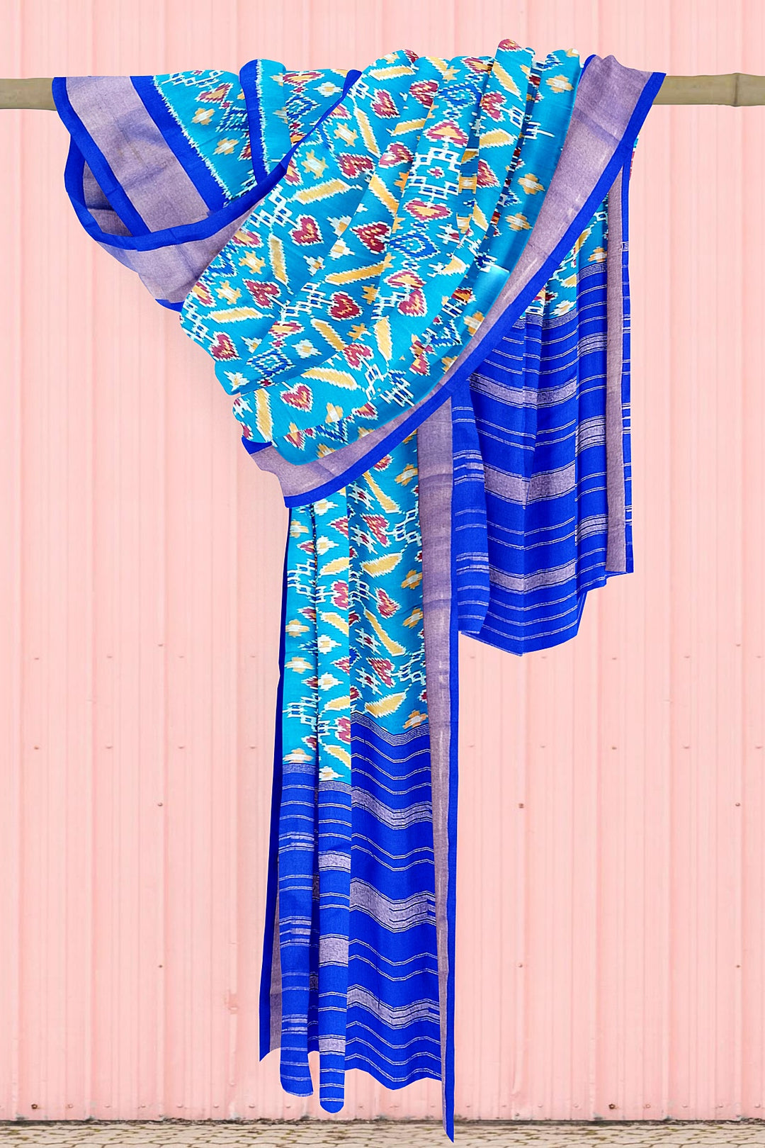 Handwoven Ikat pure silk dupatta in blue in pan bhat pattern
