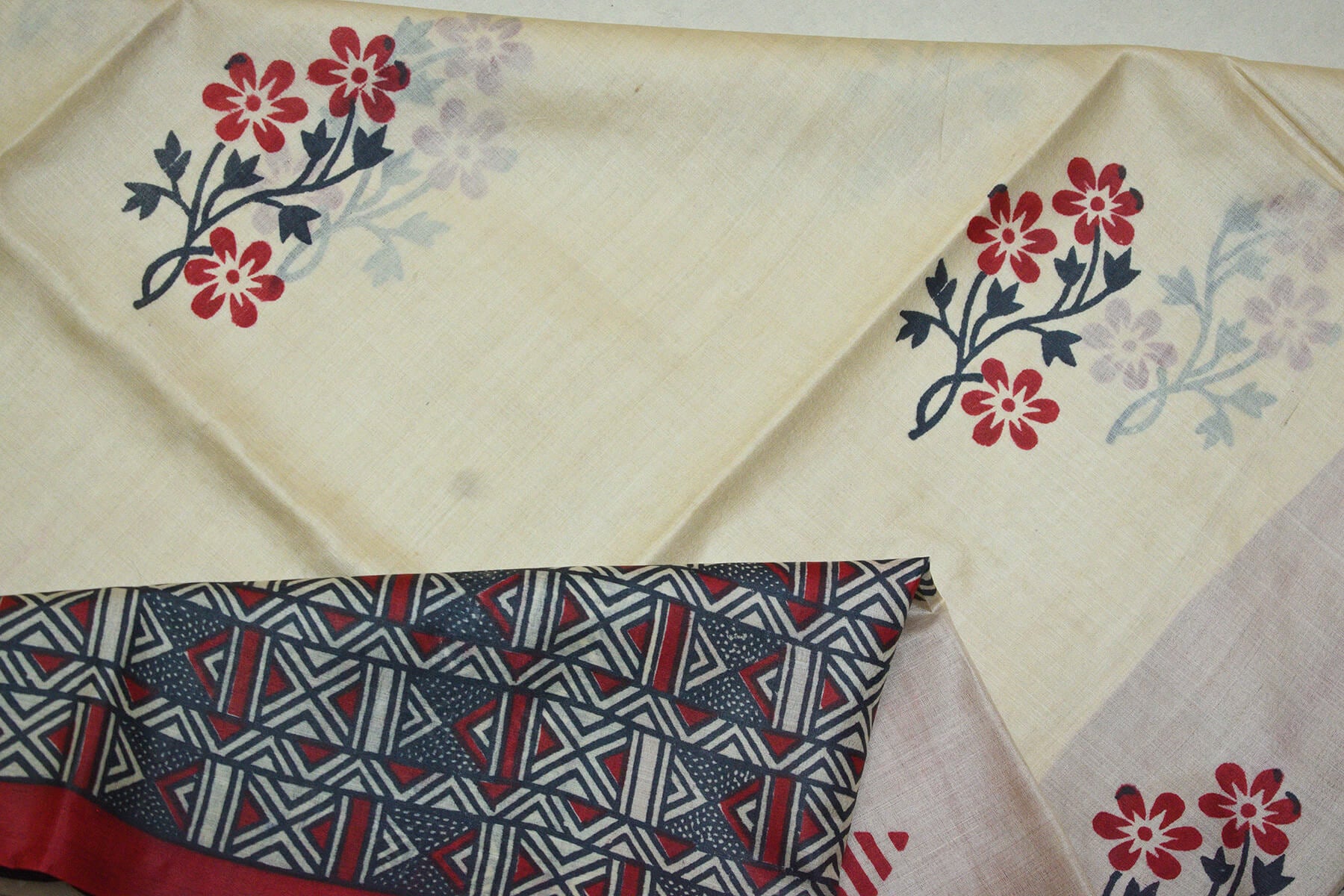 Description : Handloom desi tussar pure silk printed saree with floral pattern