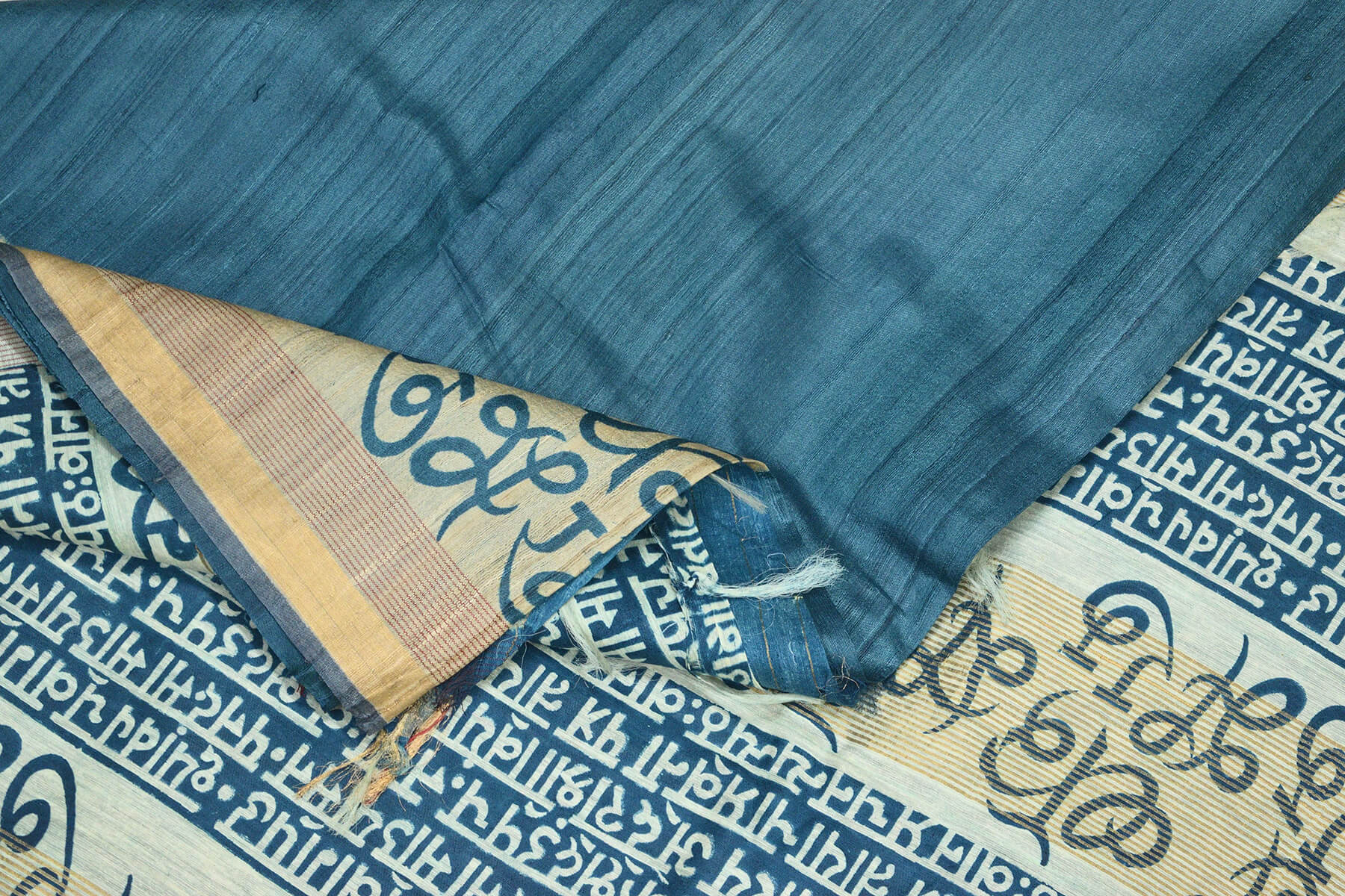 Description : Handloom desi tussar pure silk saree with Indian language print