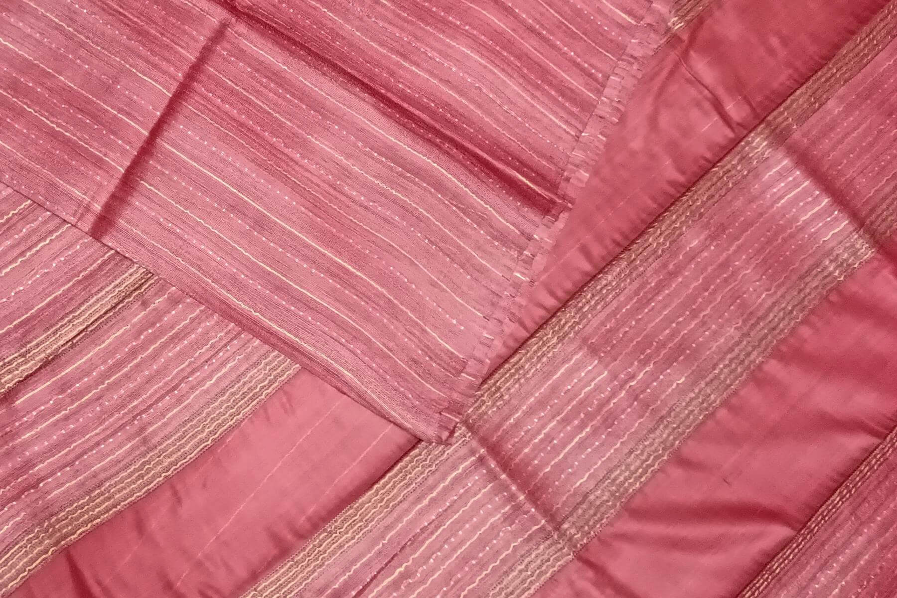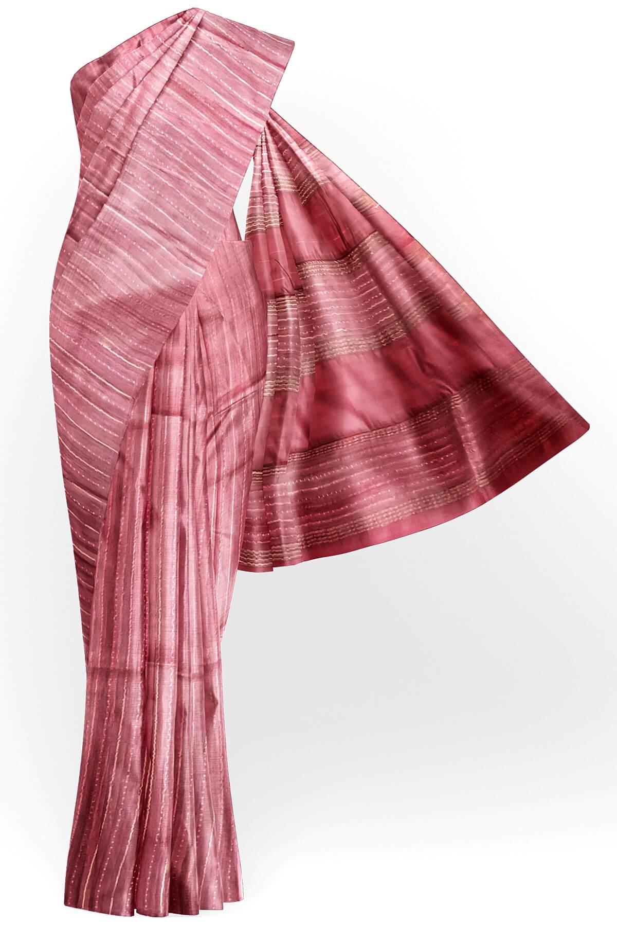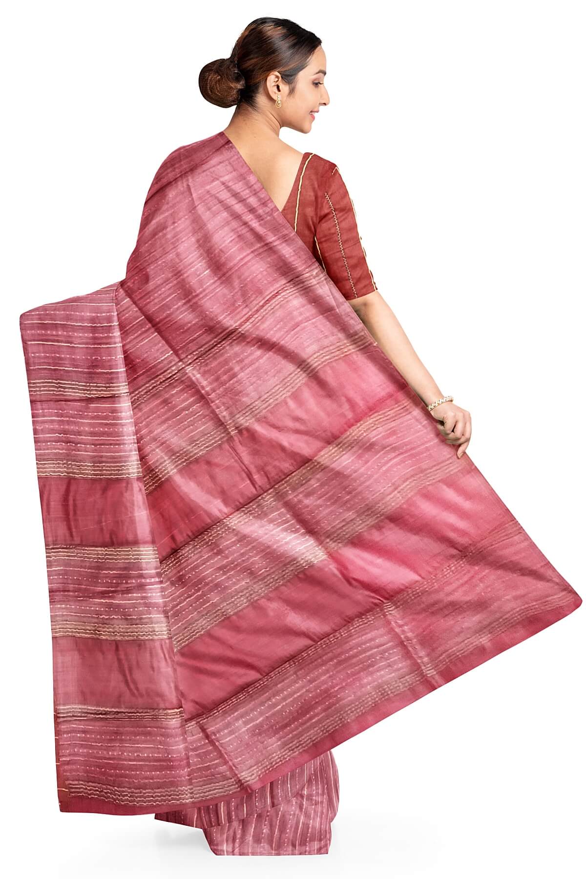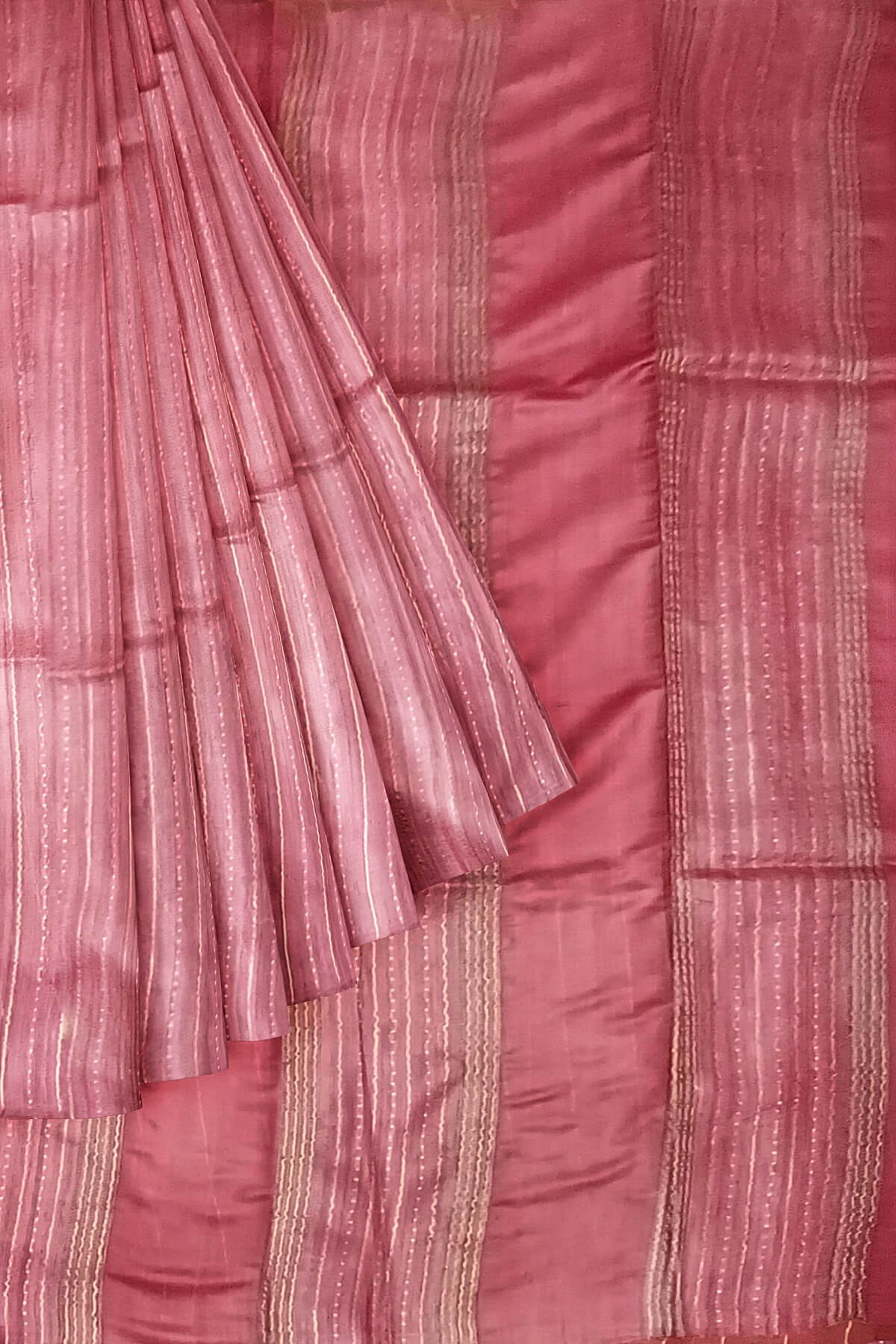 Description : Handwoven desi tussar pure silk saree in pastel burgundy with contrast pallu in maroon
