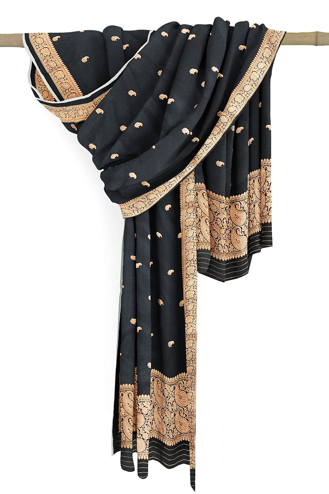 Banarasi katan pure silk dupatta in black with buttis and a rich zari border