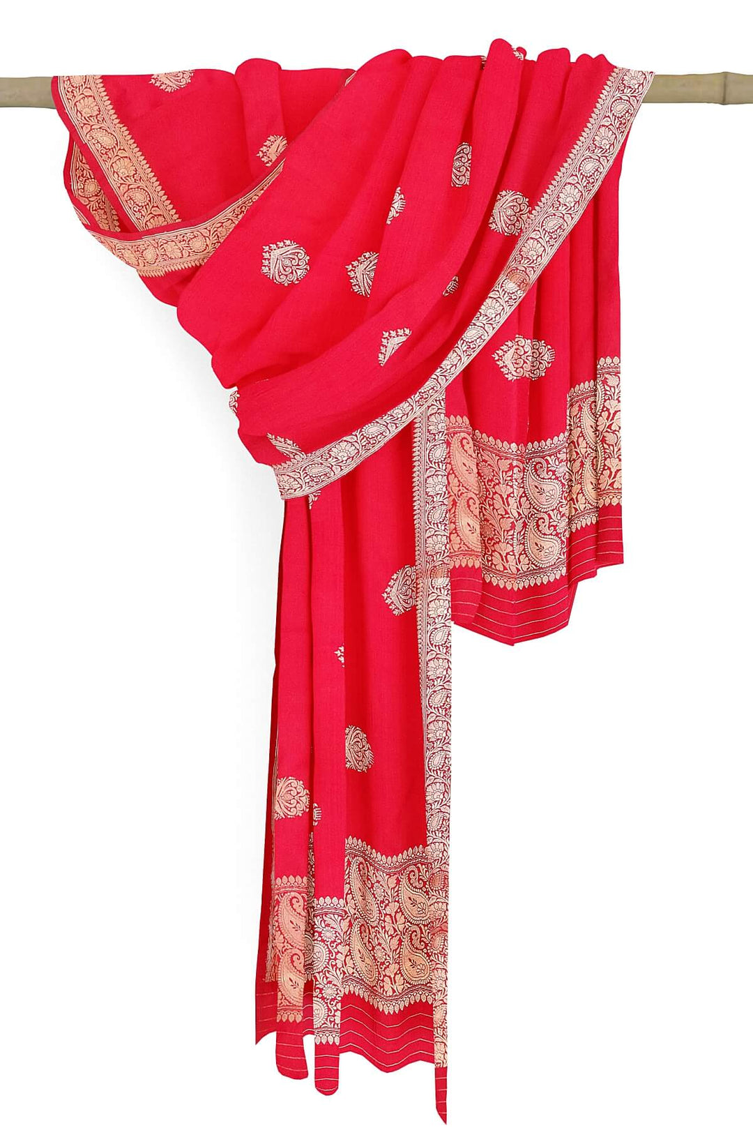 Handloom Banarasi katan pure silk dupatta in red with buttis and rich zari border