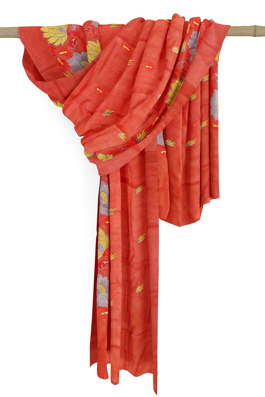 Handloom tussar pure silk dupatta in red with floral embroidery work