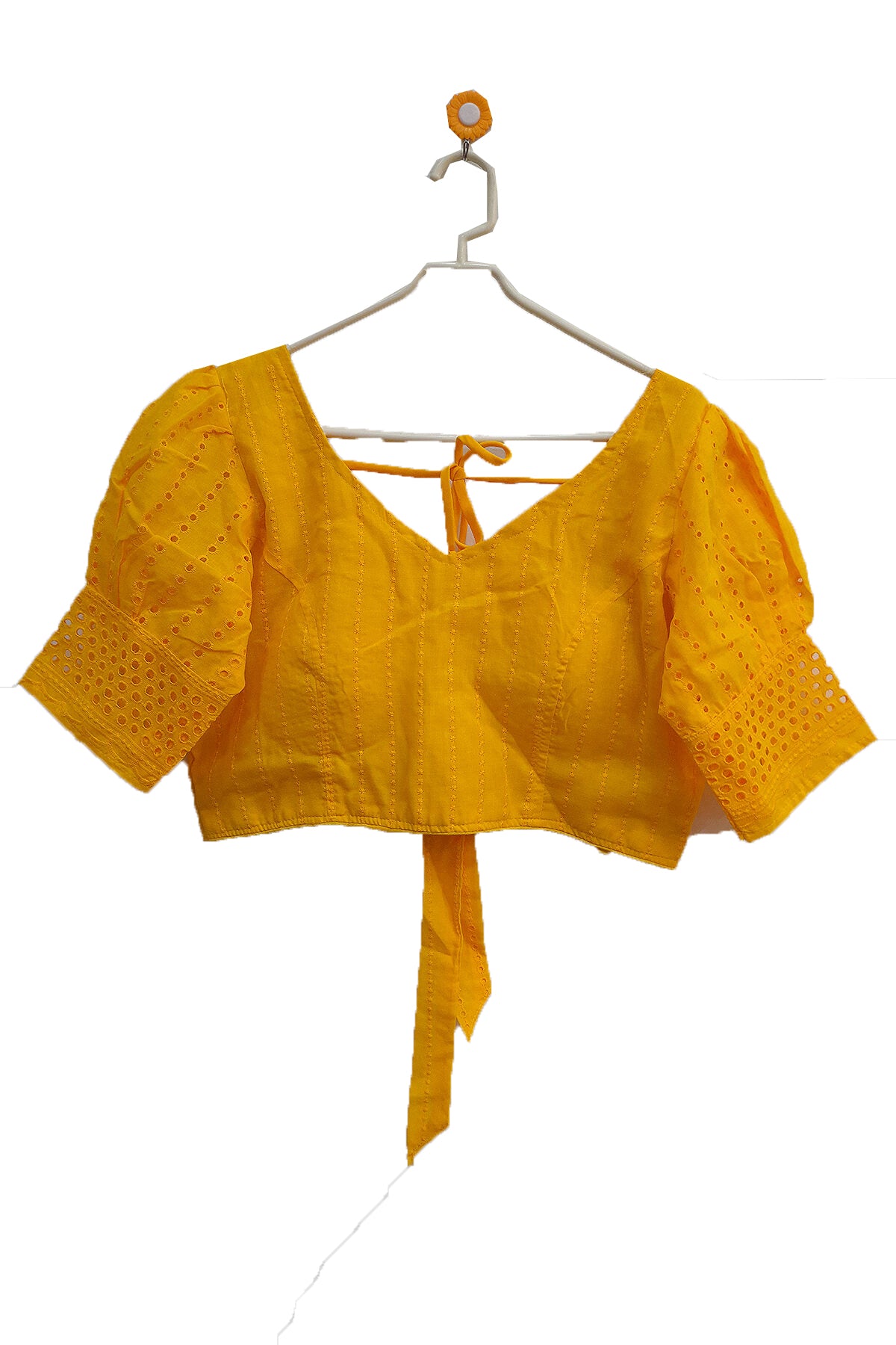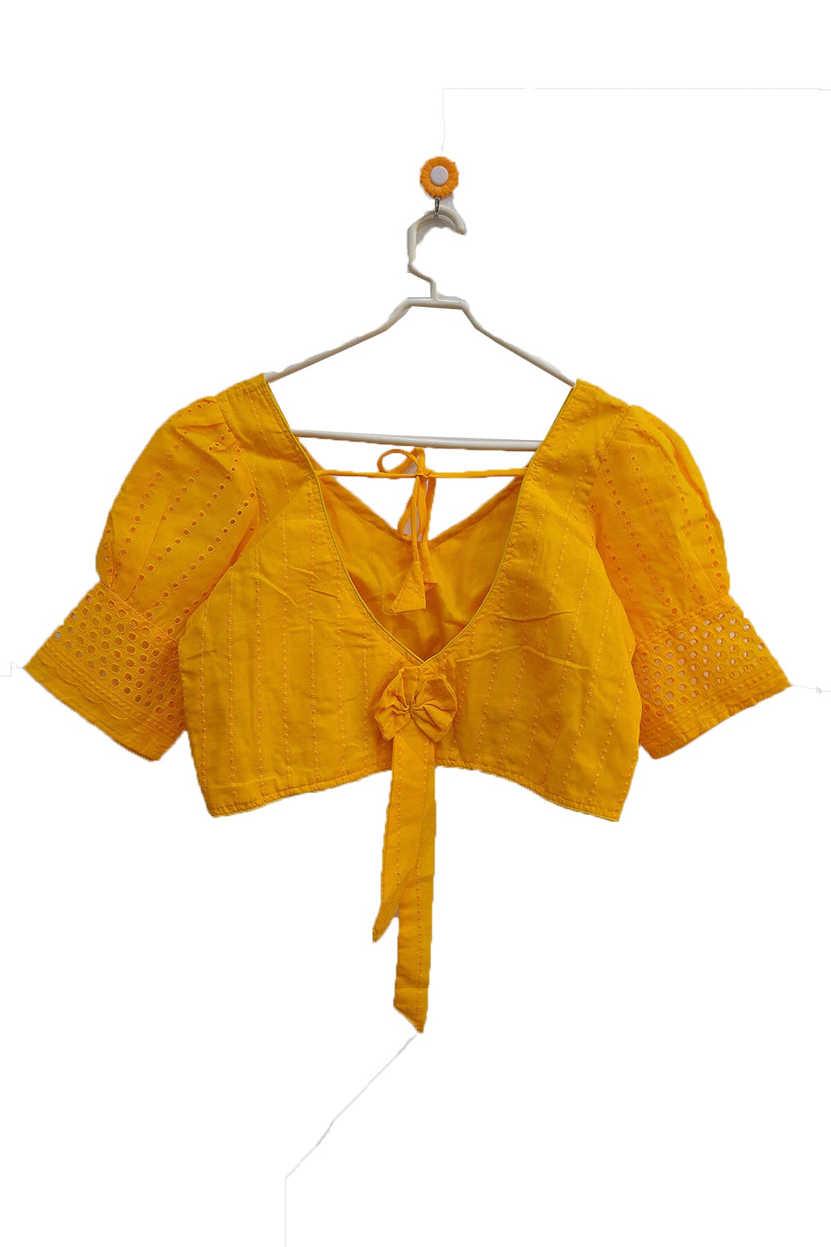 Description : Hakoba pure cotton padded blouse in yellow with puff sleeves
