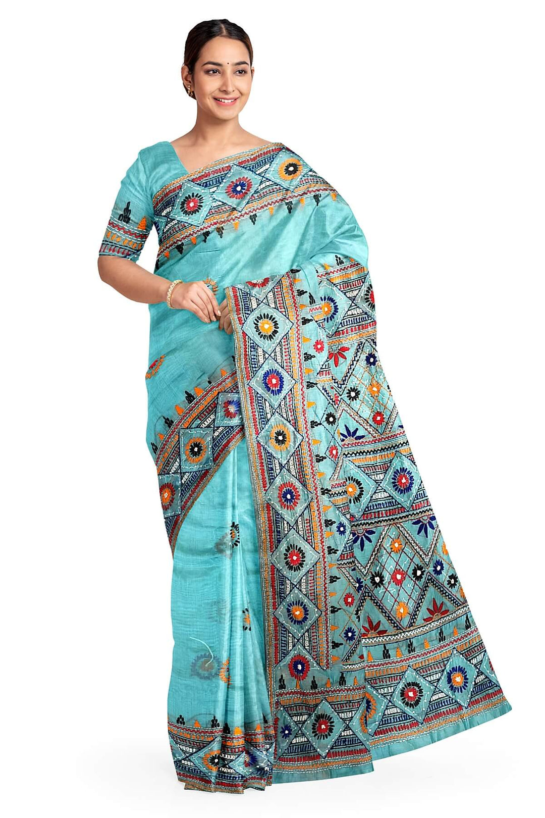 Bagru hand block print on Chanderi silk cotton saree in blue