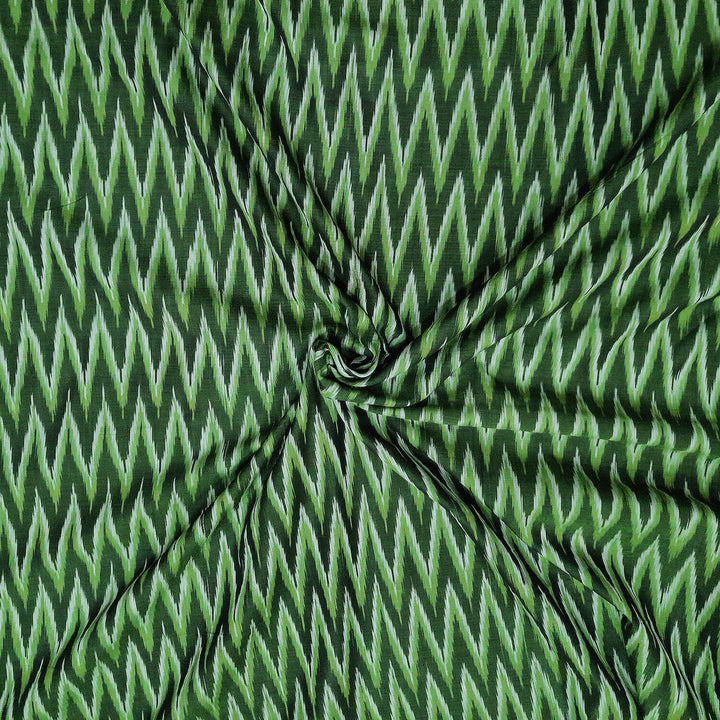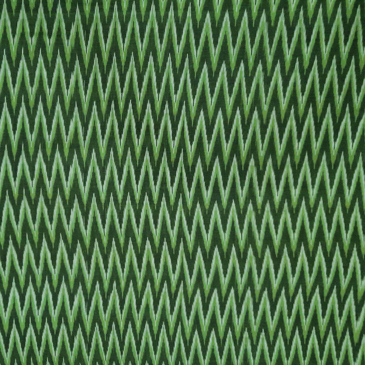 Handwoven ikat pure cotton fabric in green in zig zag pattern