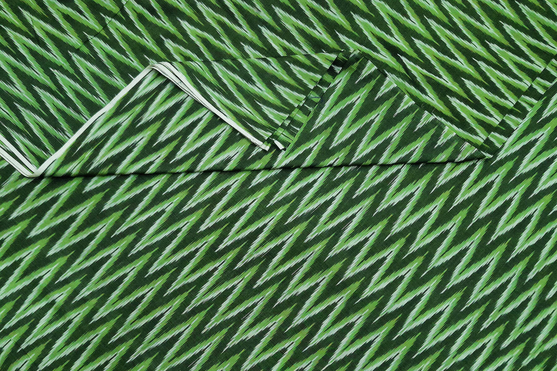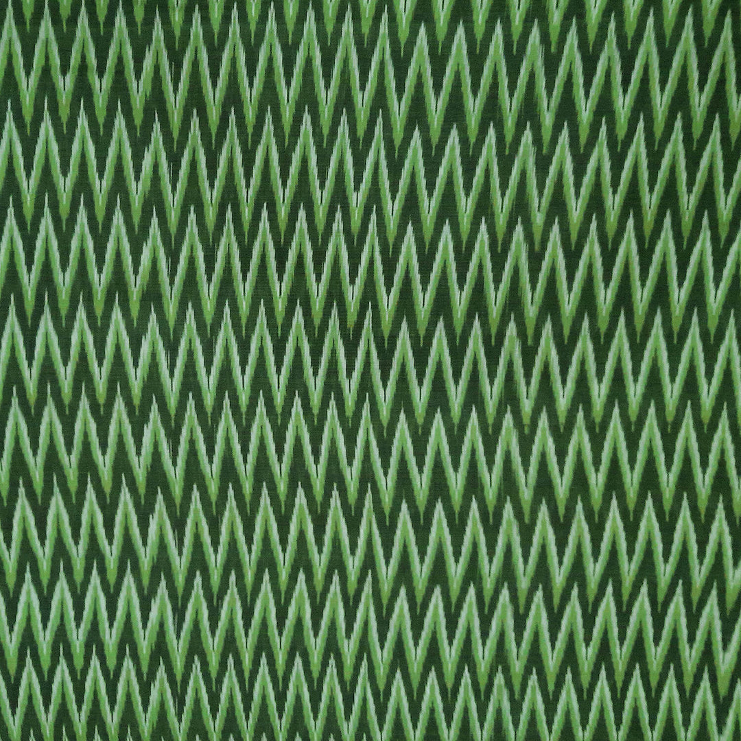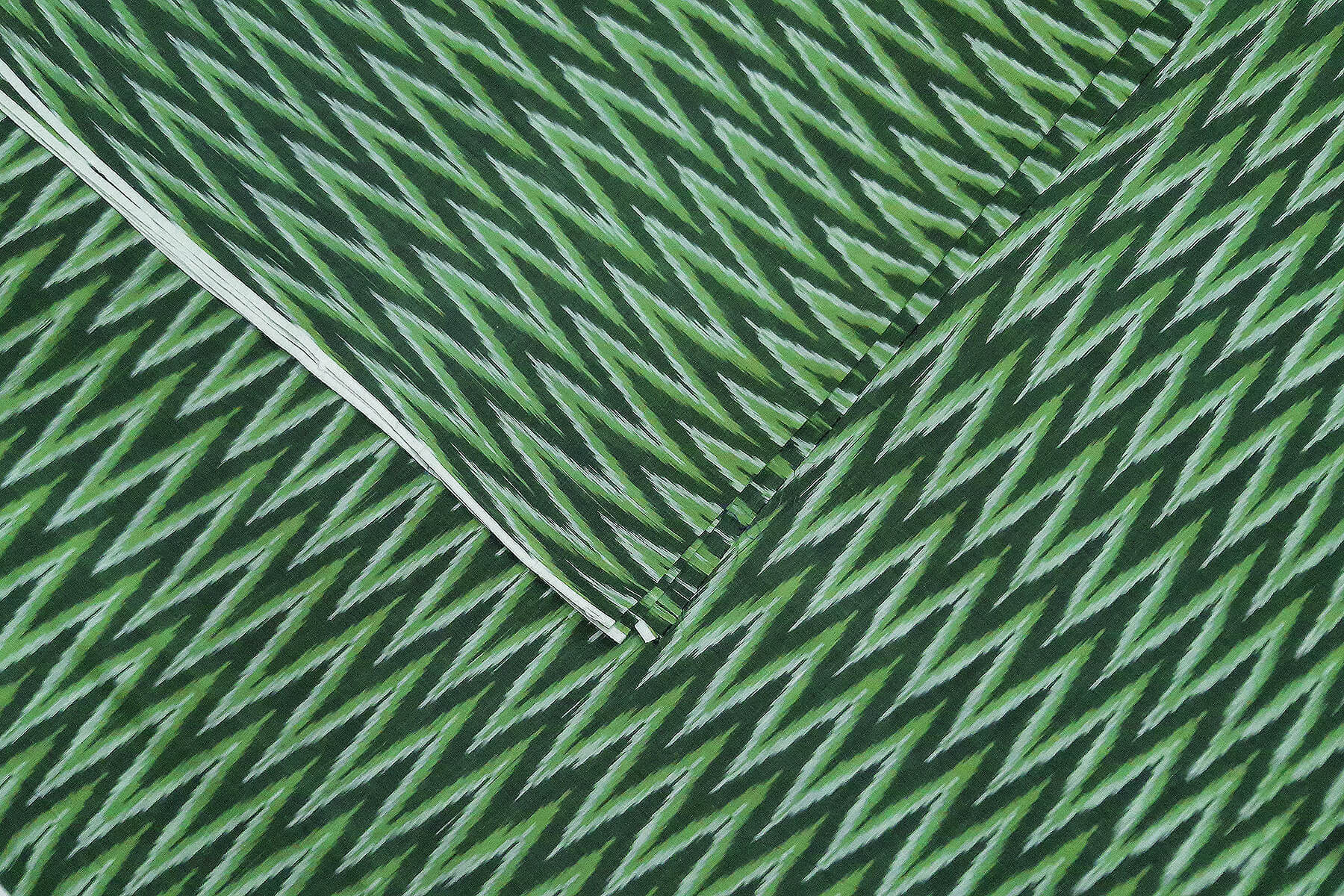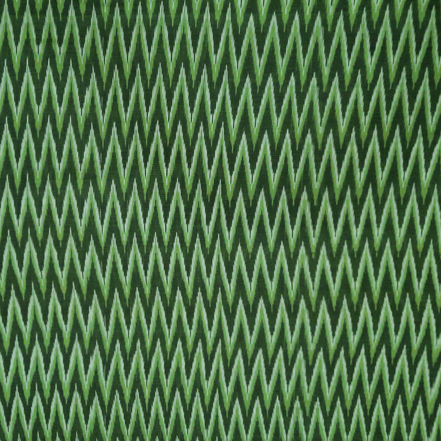 Description : Handwoven ikat pure cotton fabric in green in zig zag pattern