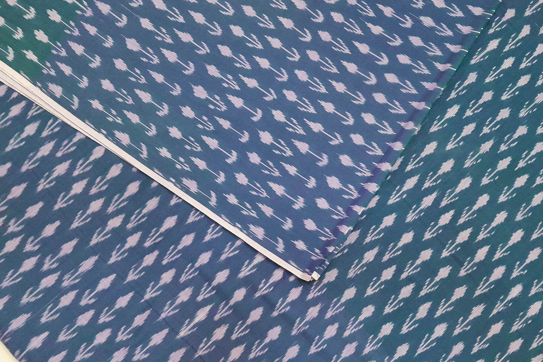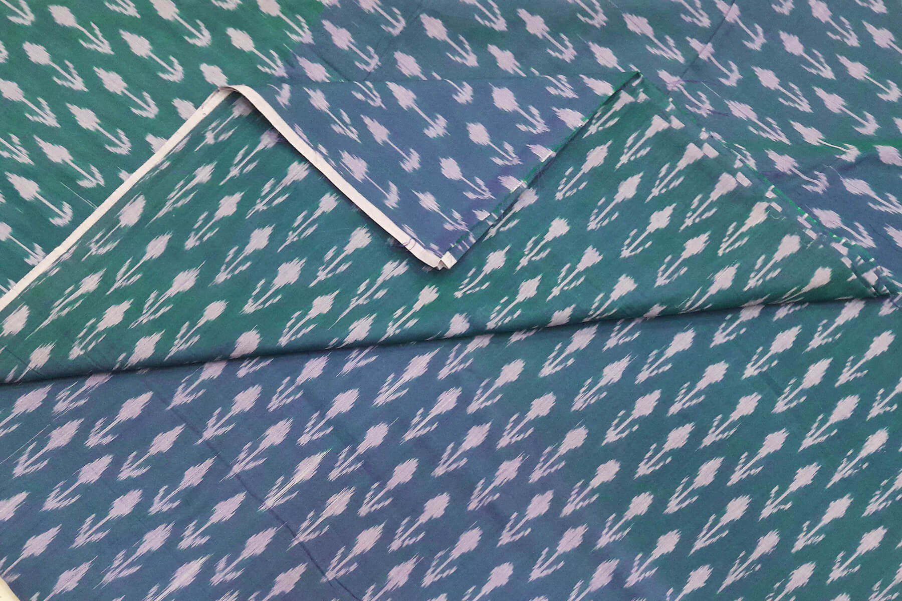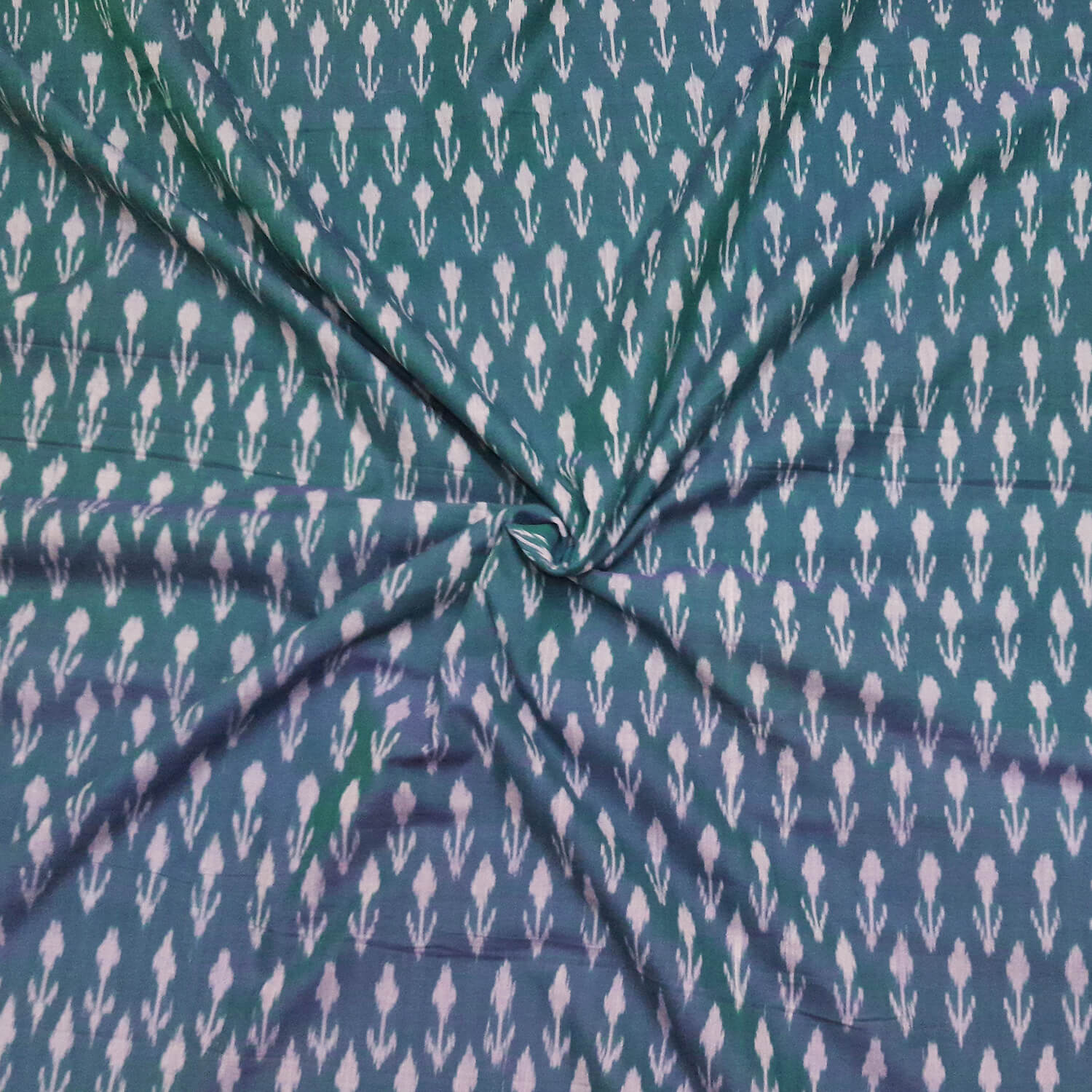 Description : Handwoven ikat pure cotton fabric in teal blue