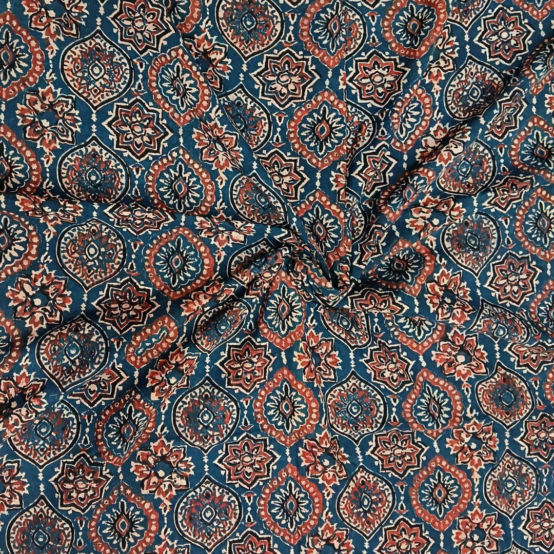 Description : Pure cotton fabric with handblock Ajrakh print in blue