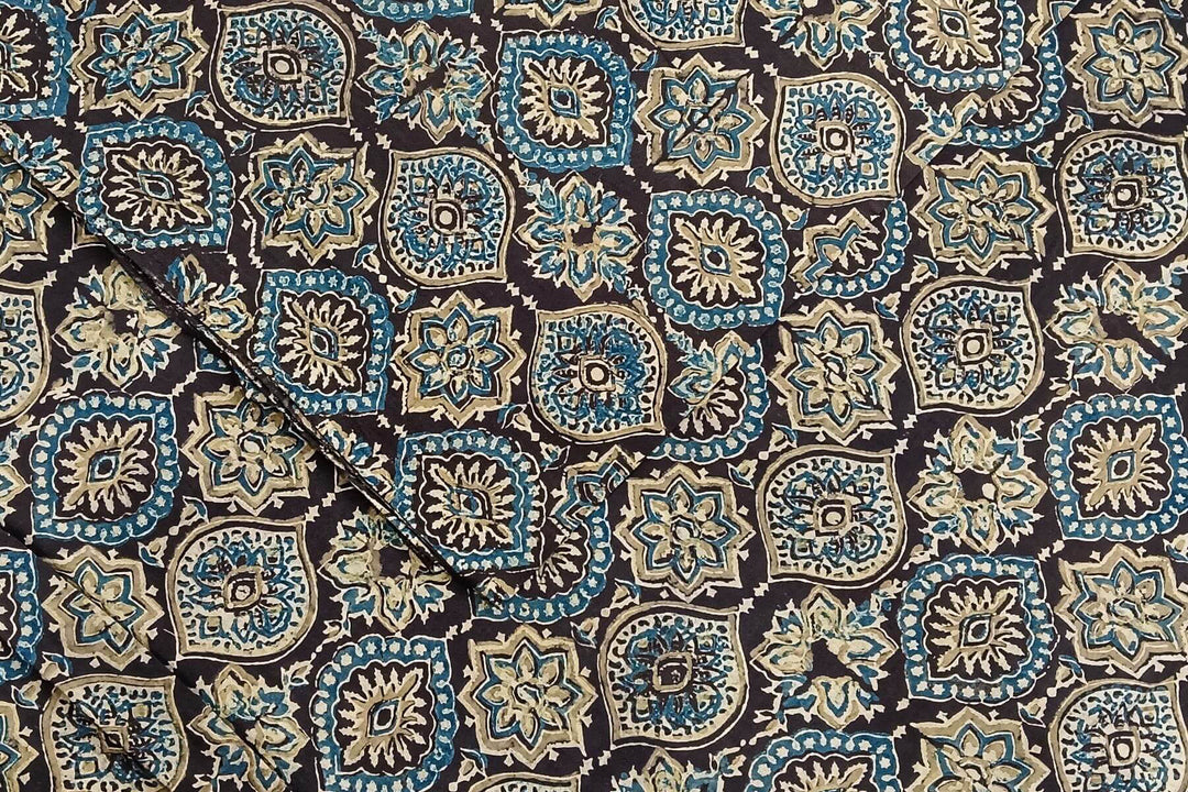 Pure cotton fabric with handblock Ajrakh print in brown