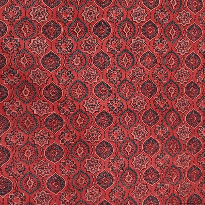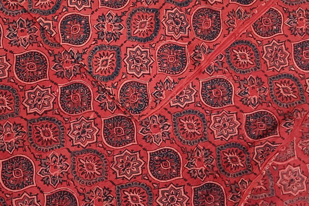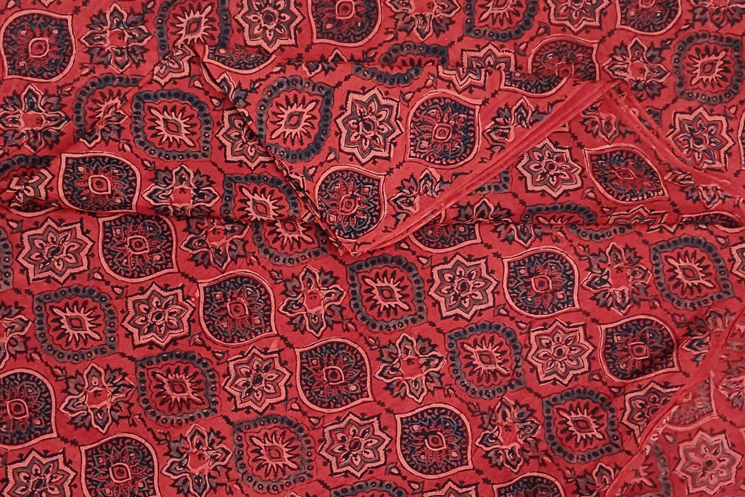 Pure cotton fabric with handblock Ajrakh print in maroon & blue