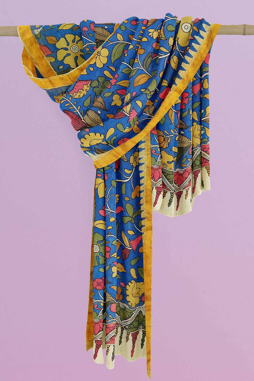 Ponduri cotton dupatta in hand painted kalamkari in blue