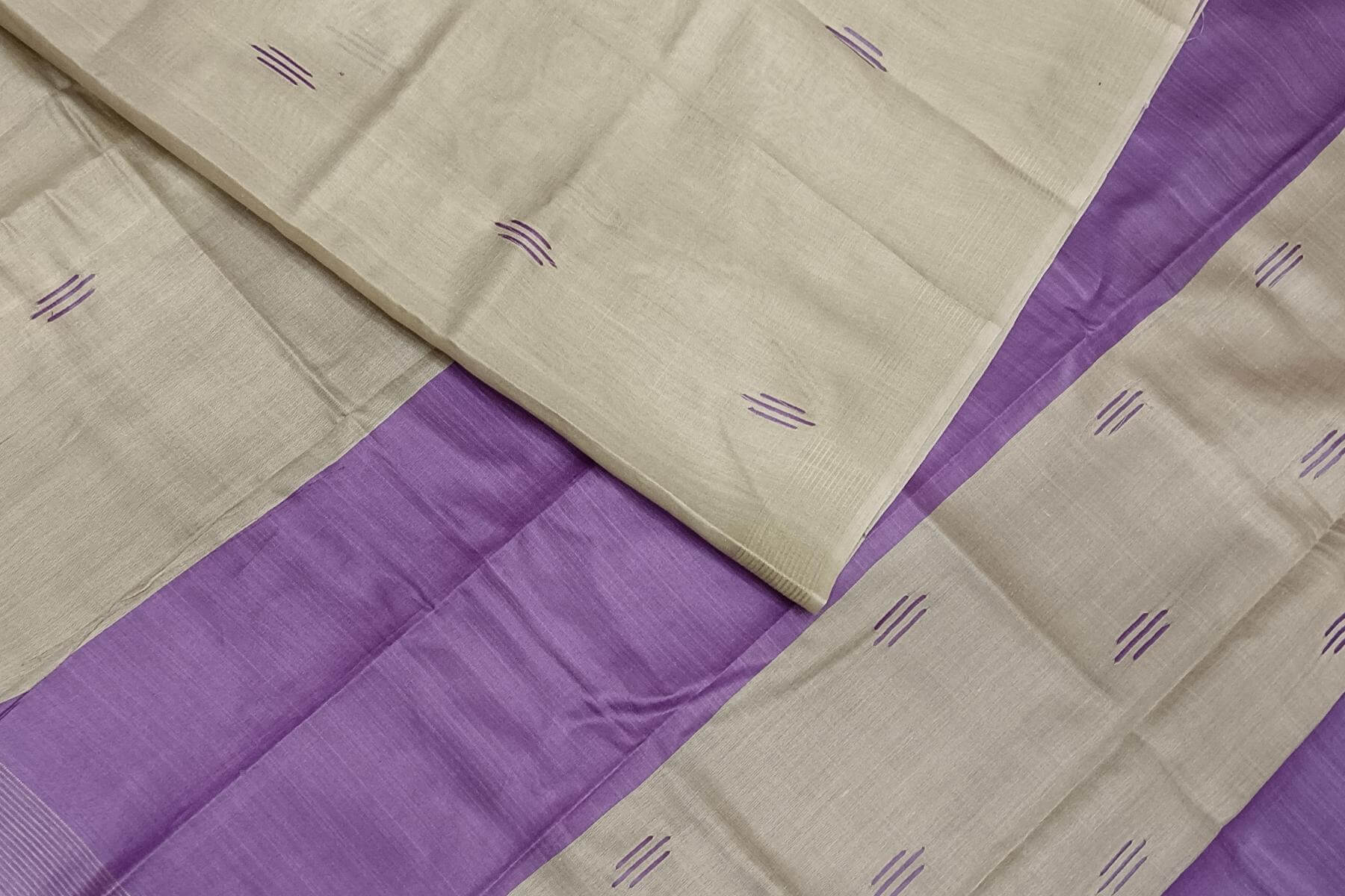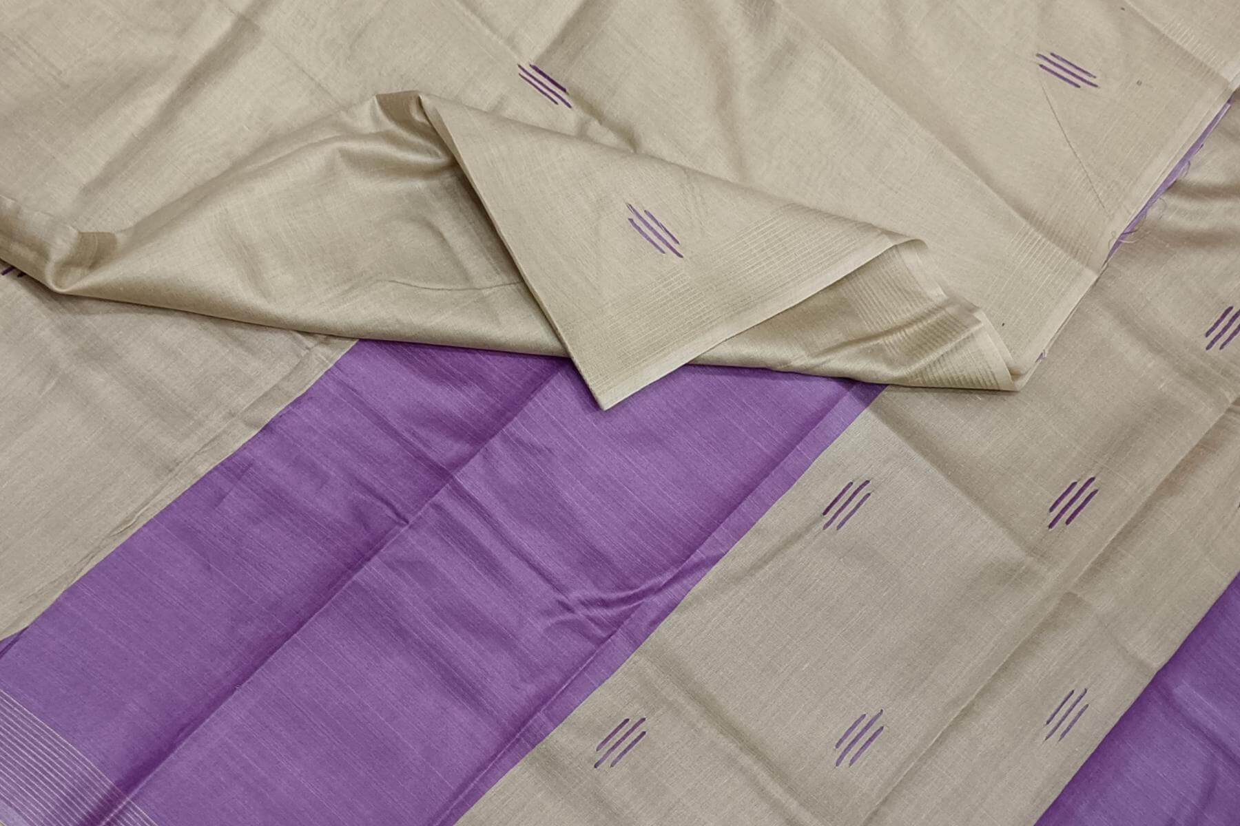 Description : Handwoven Eri silk saree in beige with striped pallu and a contrast blouse