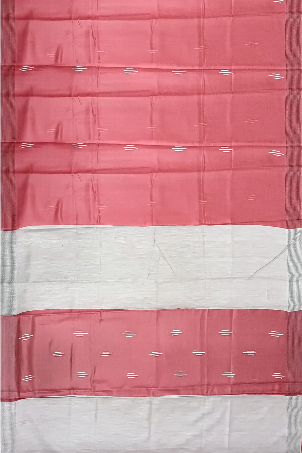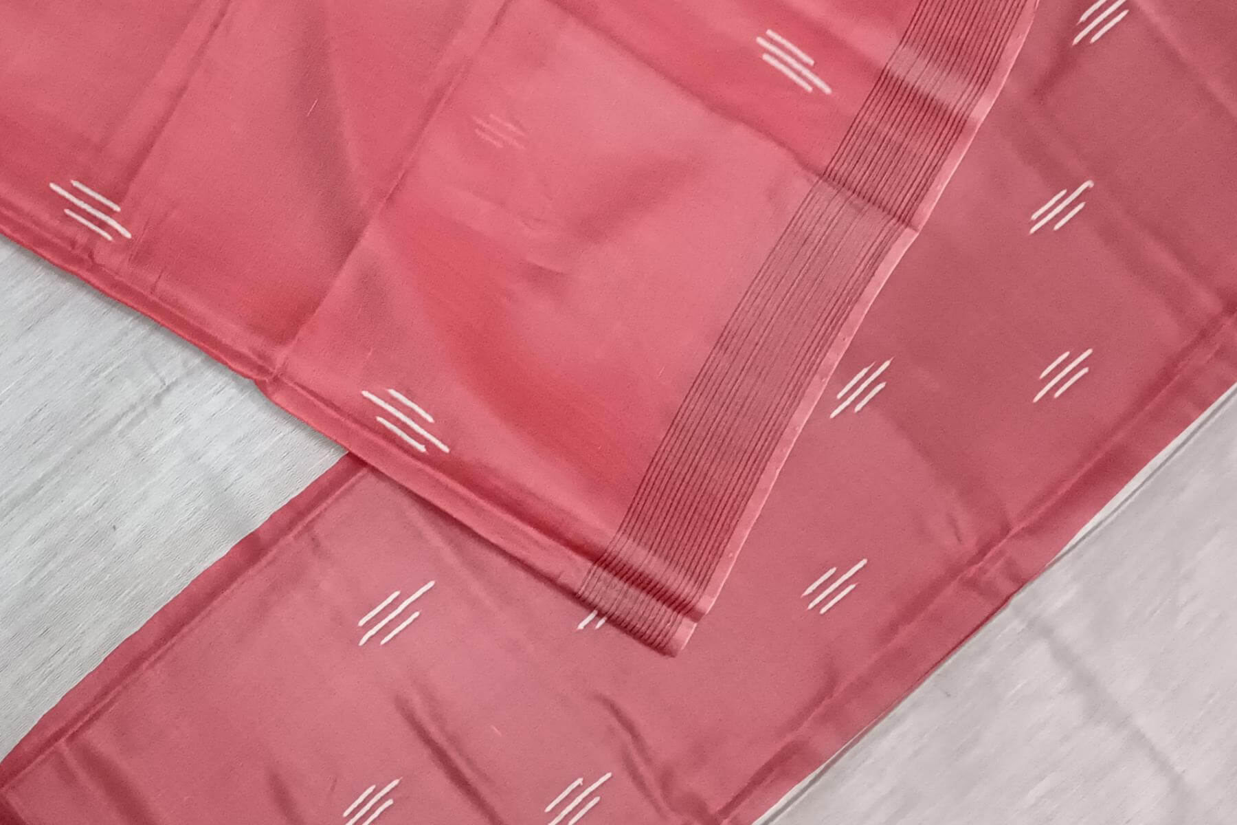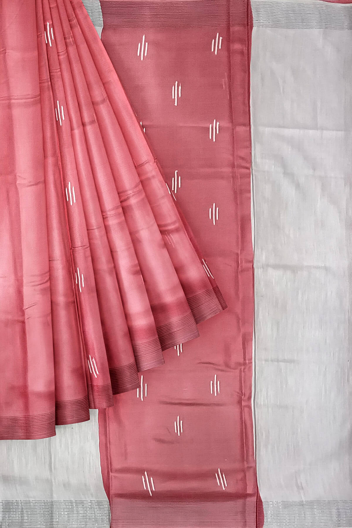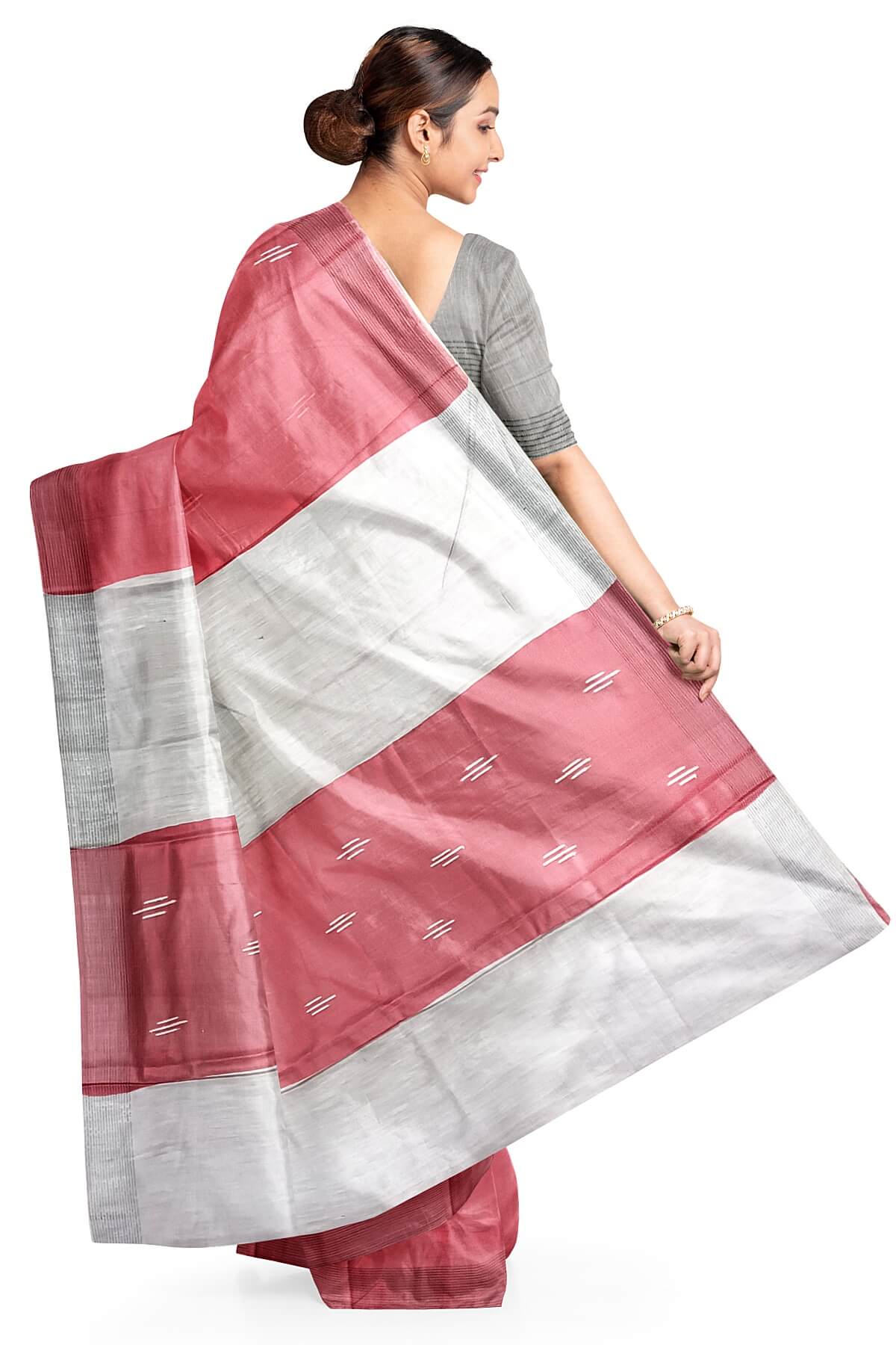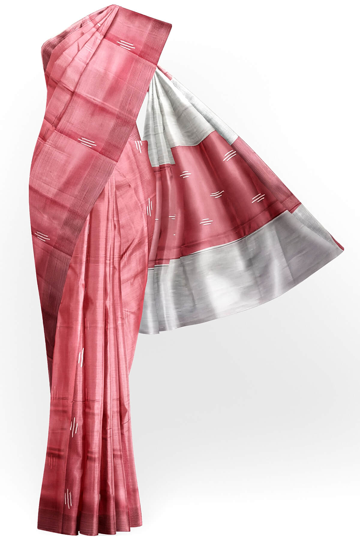 Description : Handwoven Eri silk saree in onion pink with striped pallu and a contrast blouse