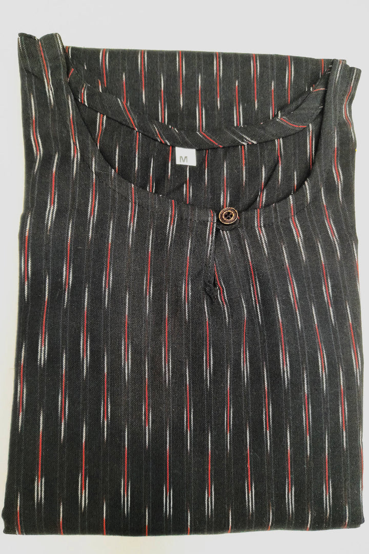 Handwoven ikat cotton kurti in straight cut in black