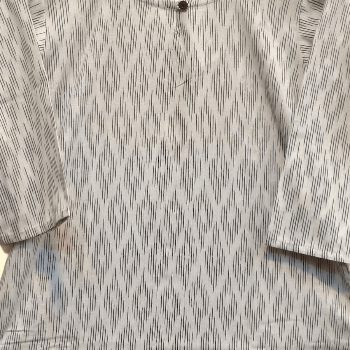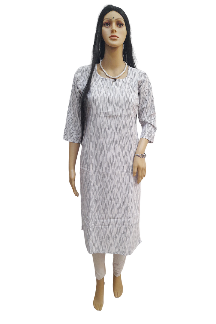 Description : Handwoven ikat cotton kurti in straight cut in white