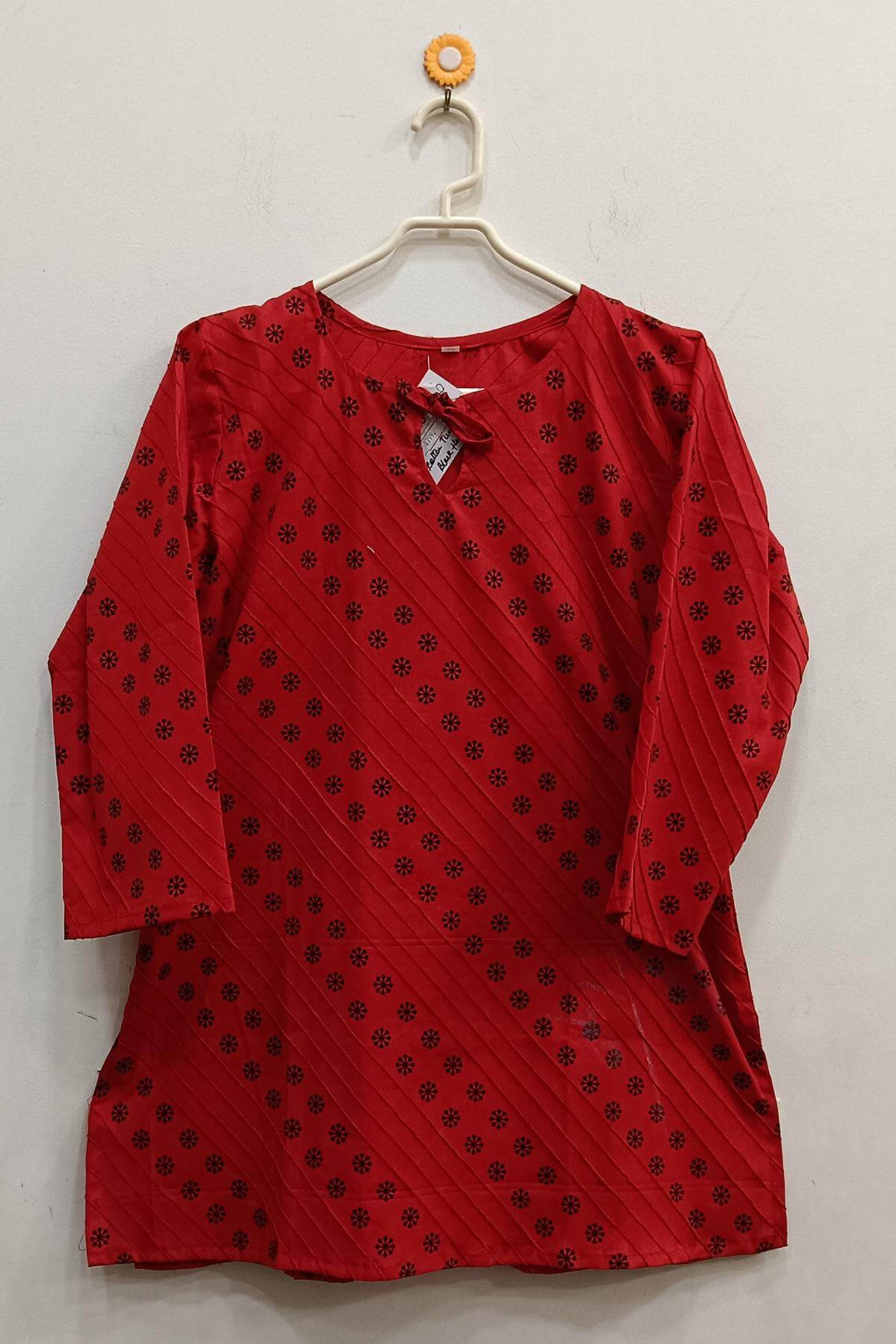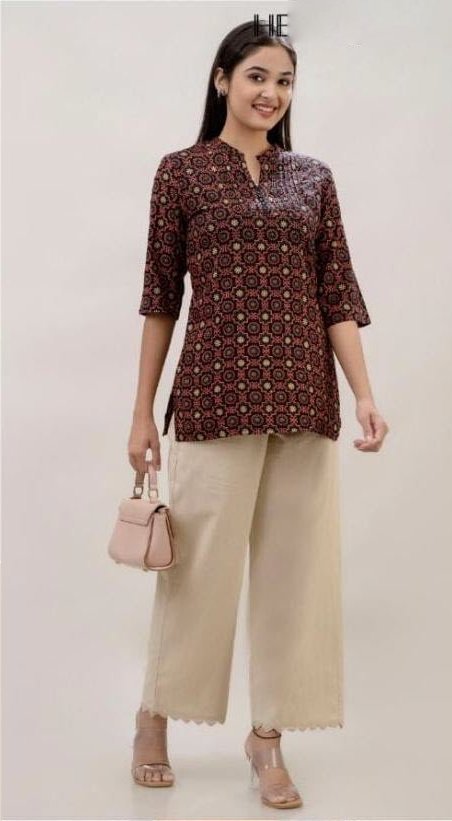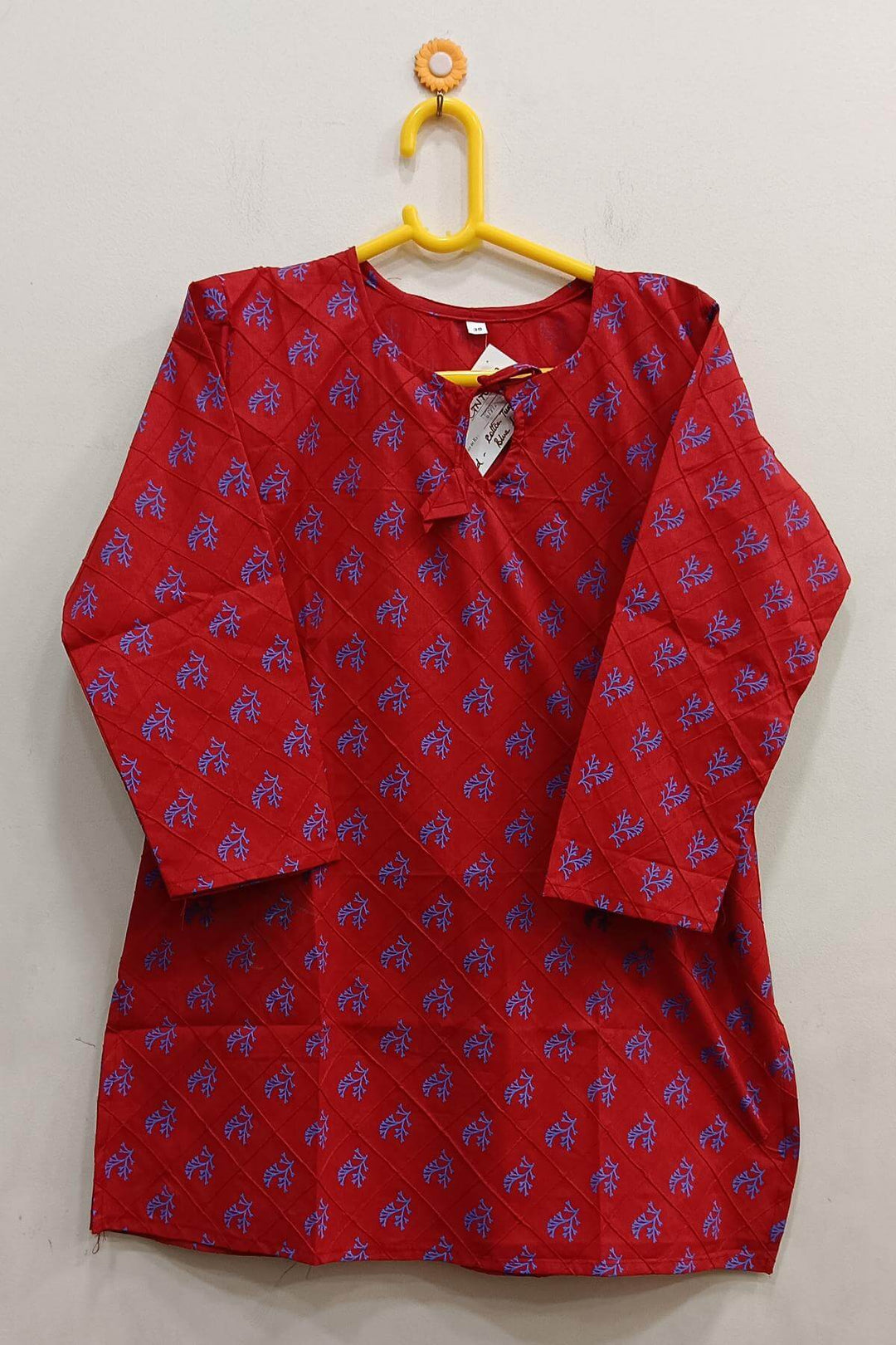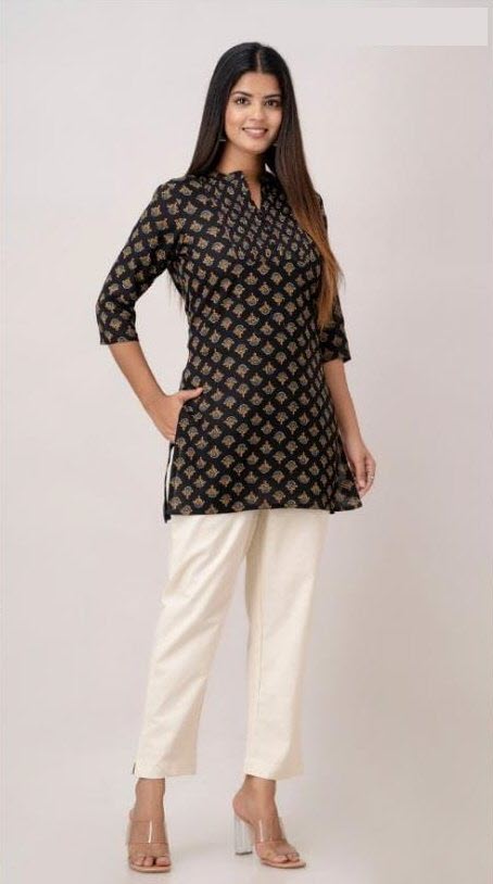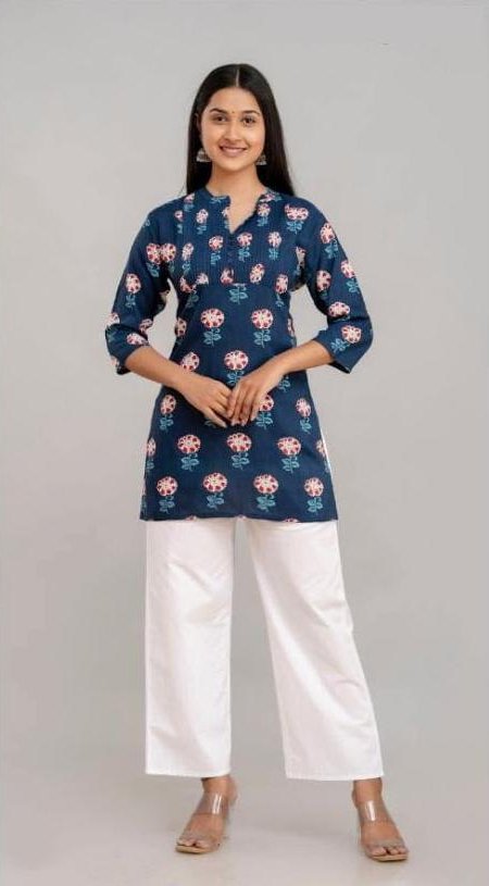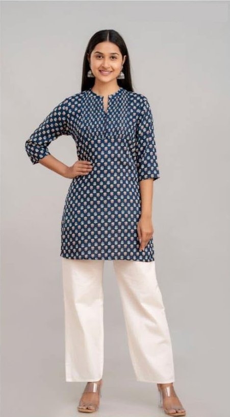 Pin tuck pure cotton tunic in navy blue with paisley motifs