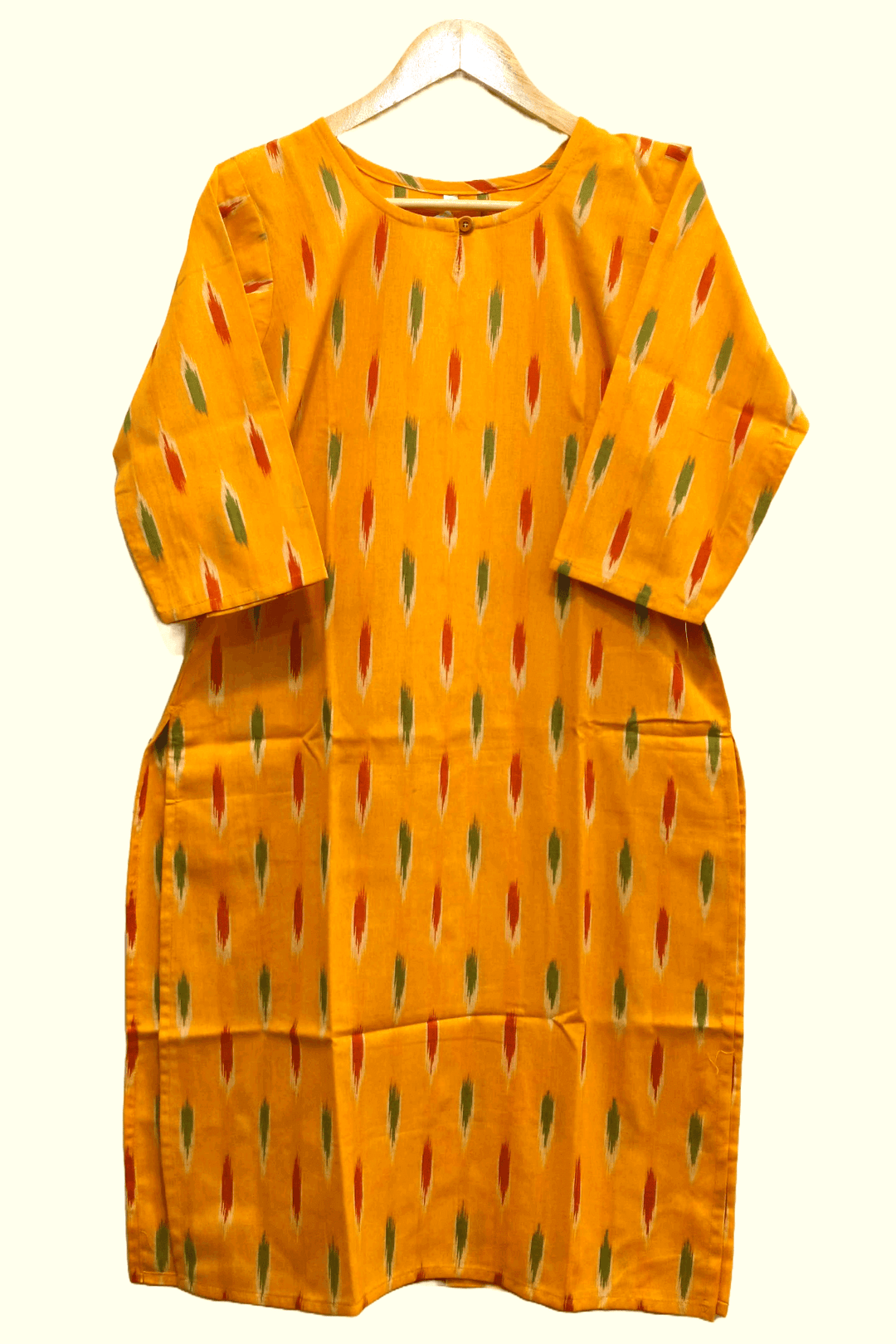 Handwoven ikat cotton kurti in straight cut in navy blue