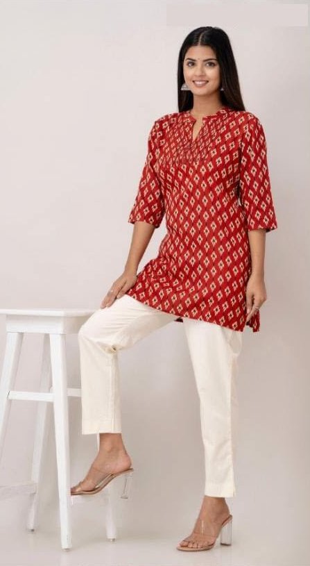Pin tuck pure cotton tunic in white with Buddha motifs