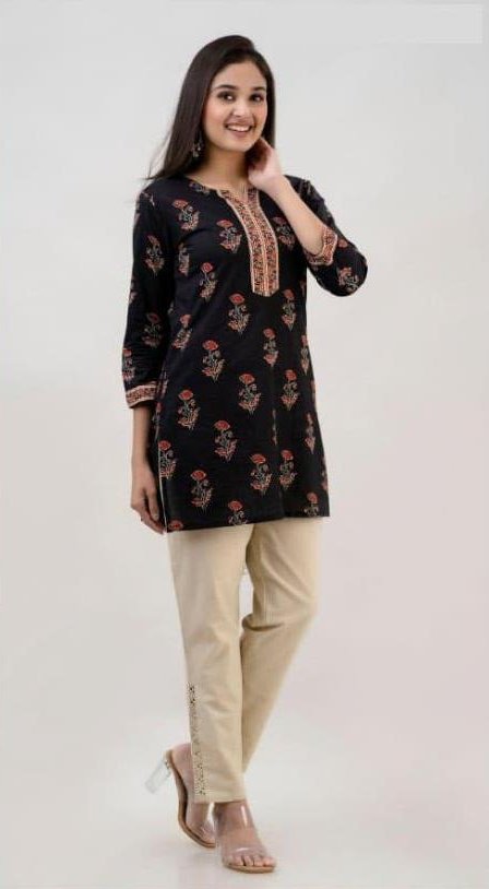 Cotton tunic in black in floral