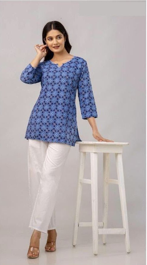 Cotton tunic in blue in floral