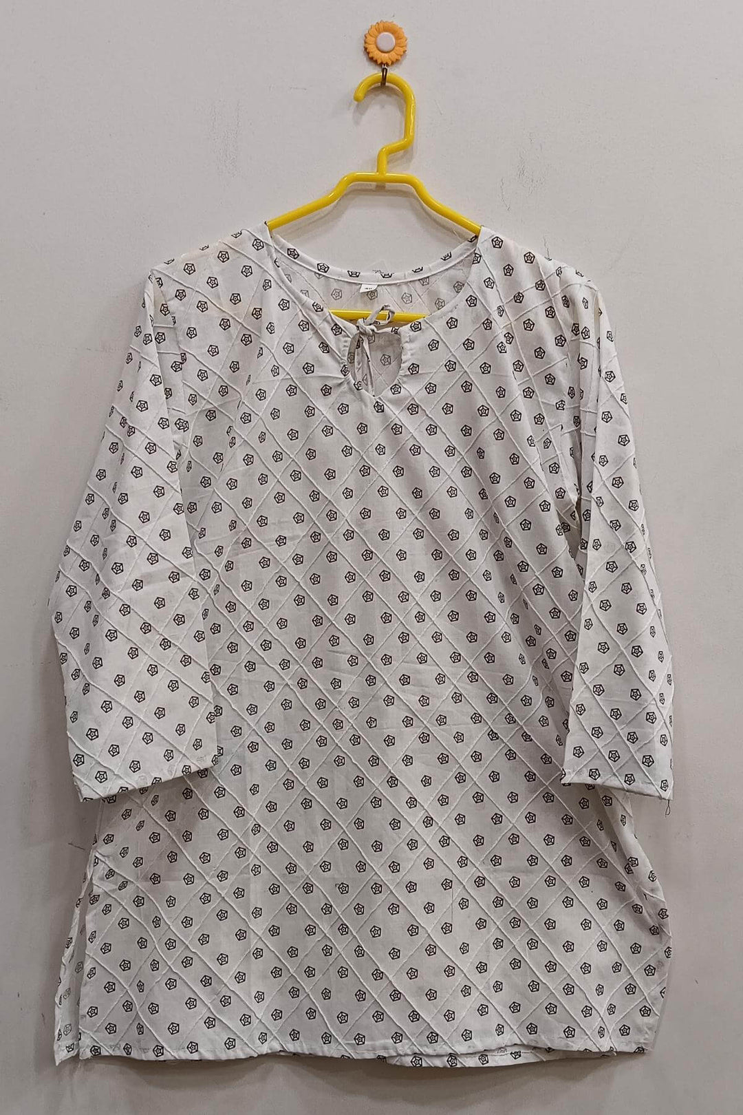 Pin tuck pure cotton tunic in white with circular motifs