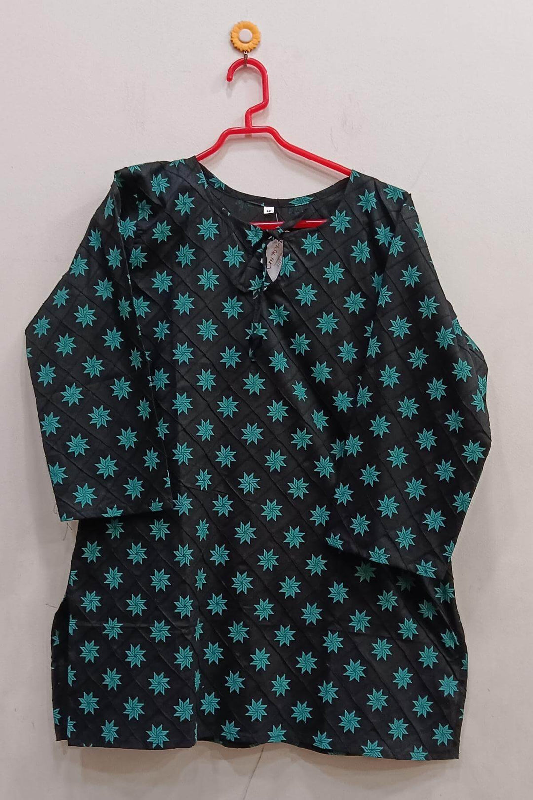 Pin tuck pure cotton tunic in black with green floral