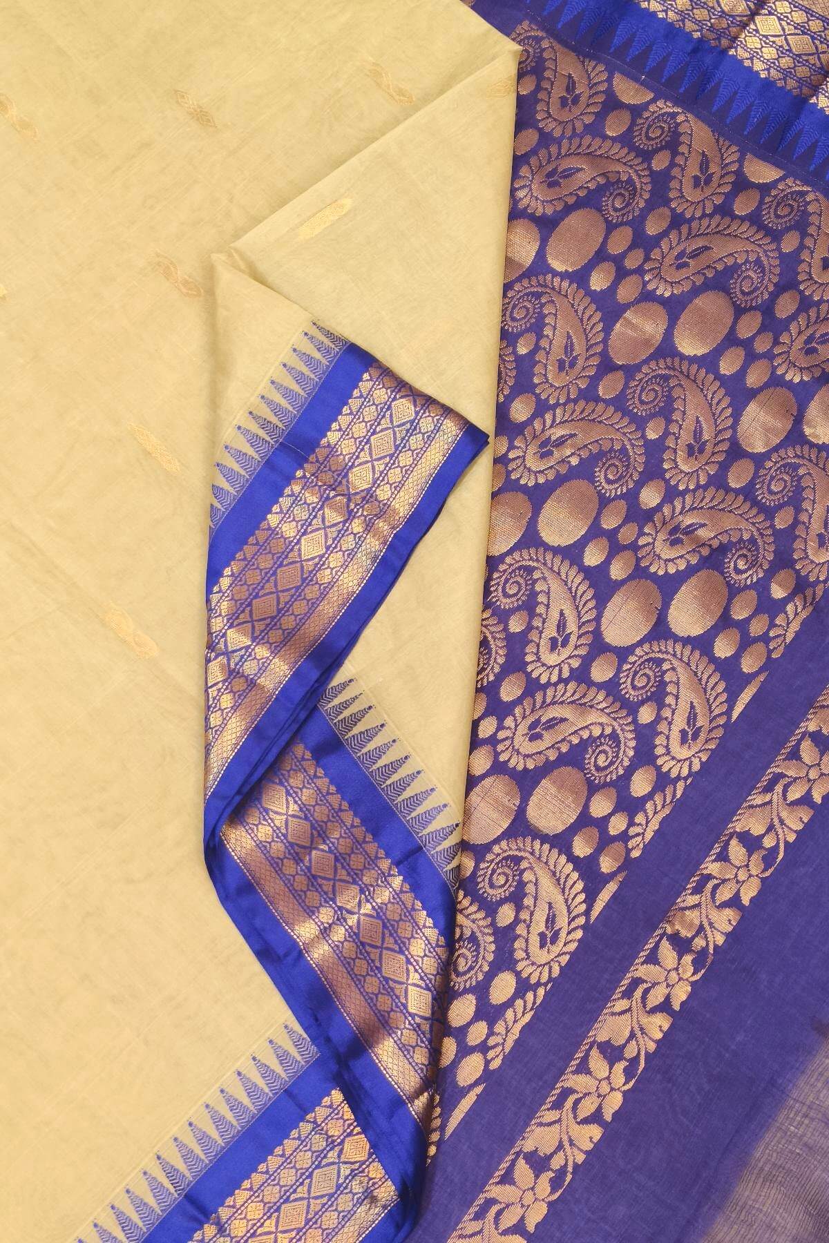 Description : Gadwal cotton silk saree in lemon green & black with buttis & temple border