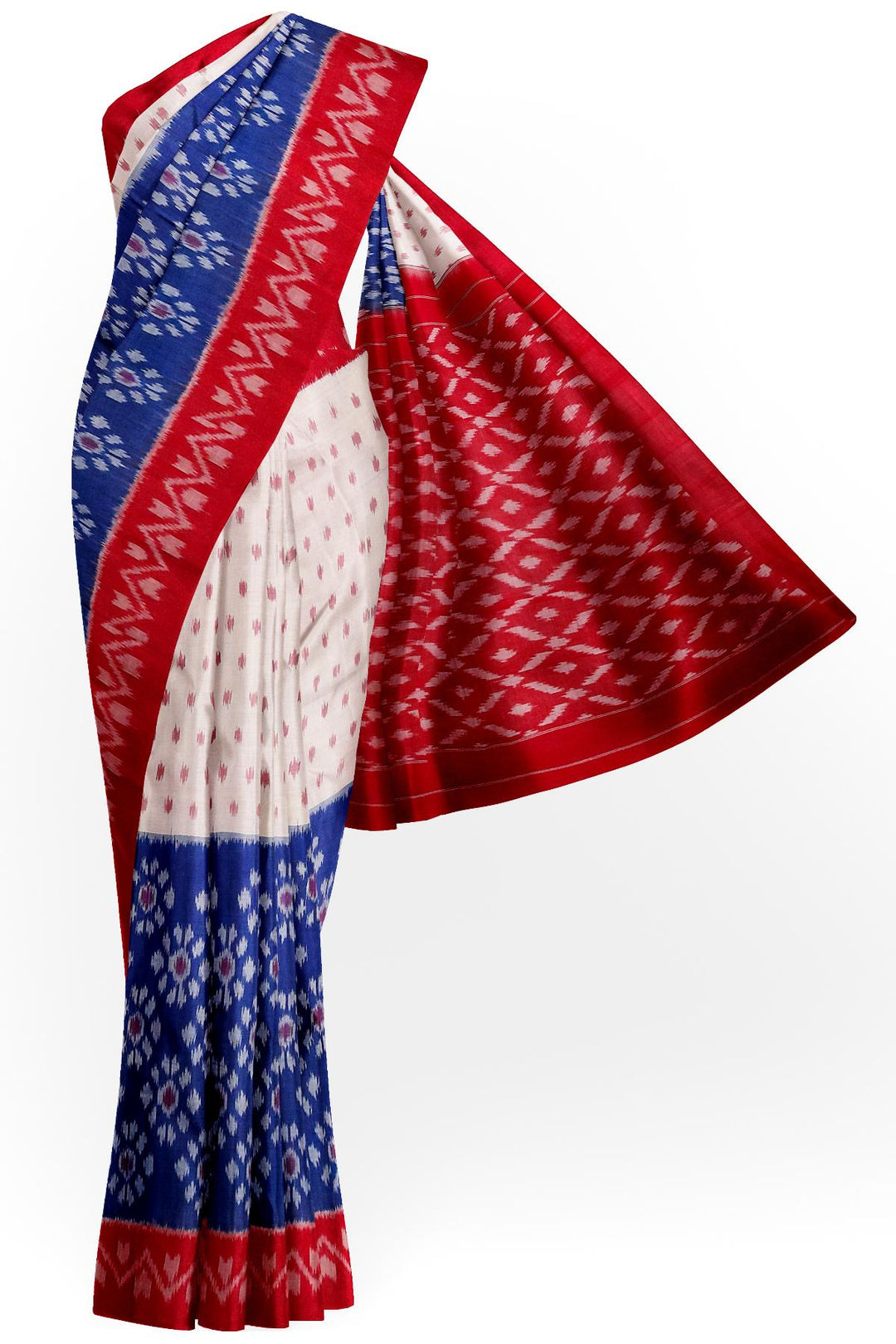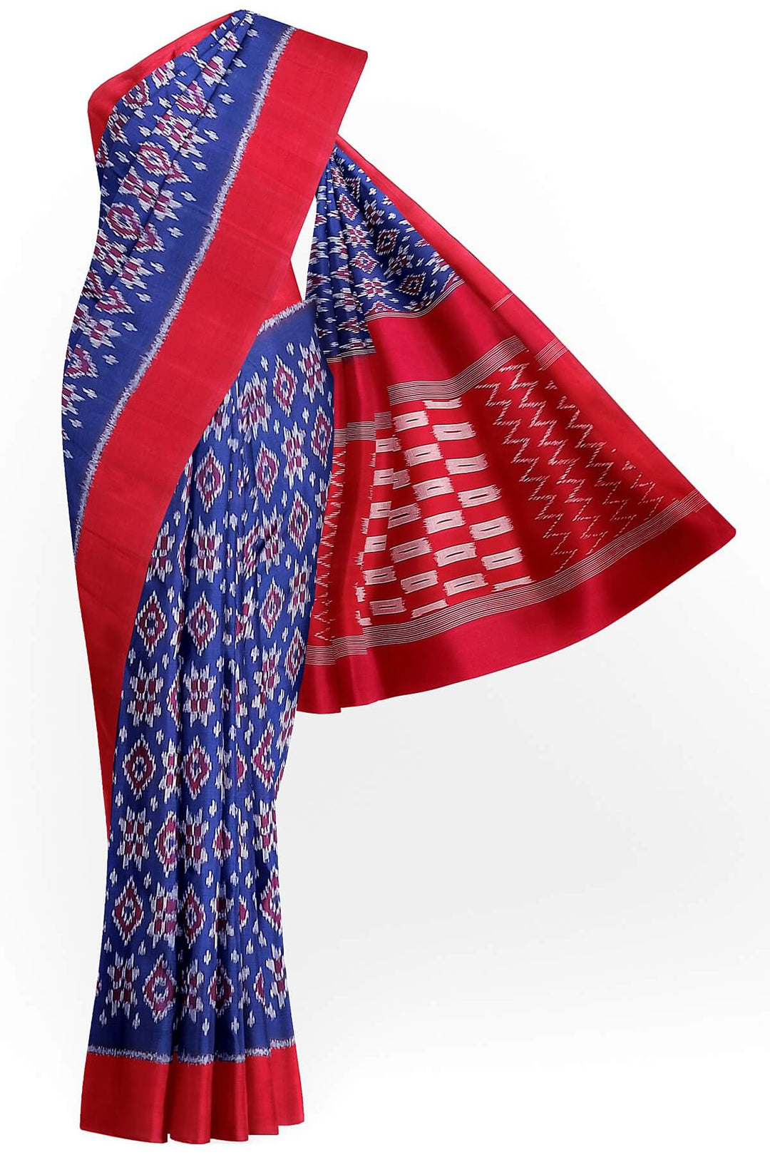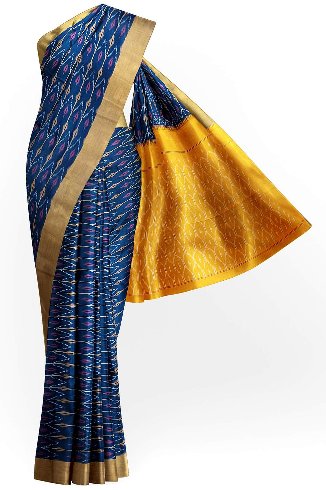 Handwoven ikat pure cotton saree in blue in 4 motif telia pattern