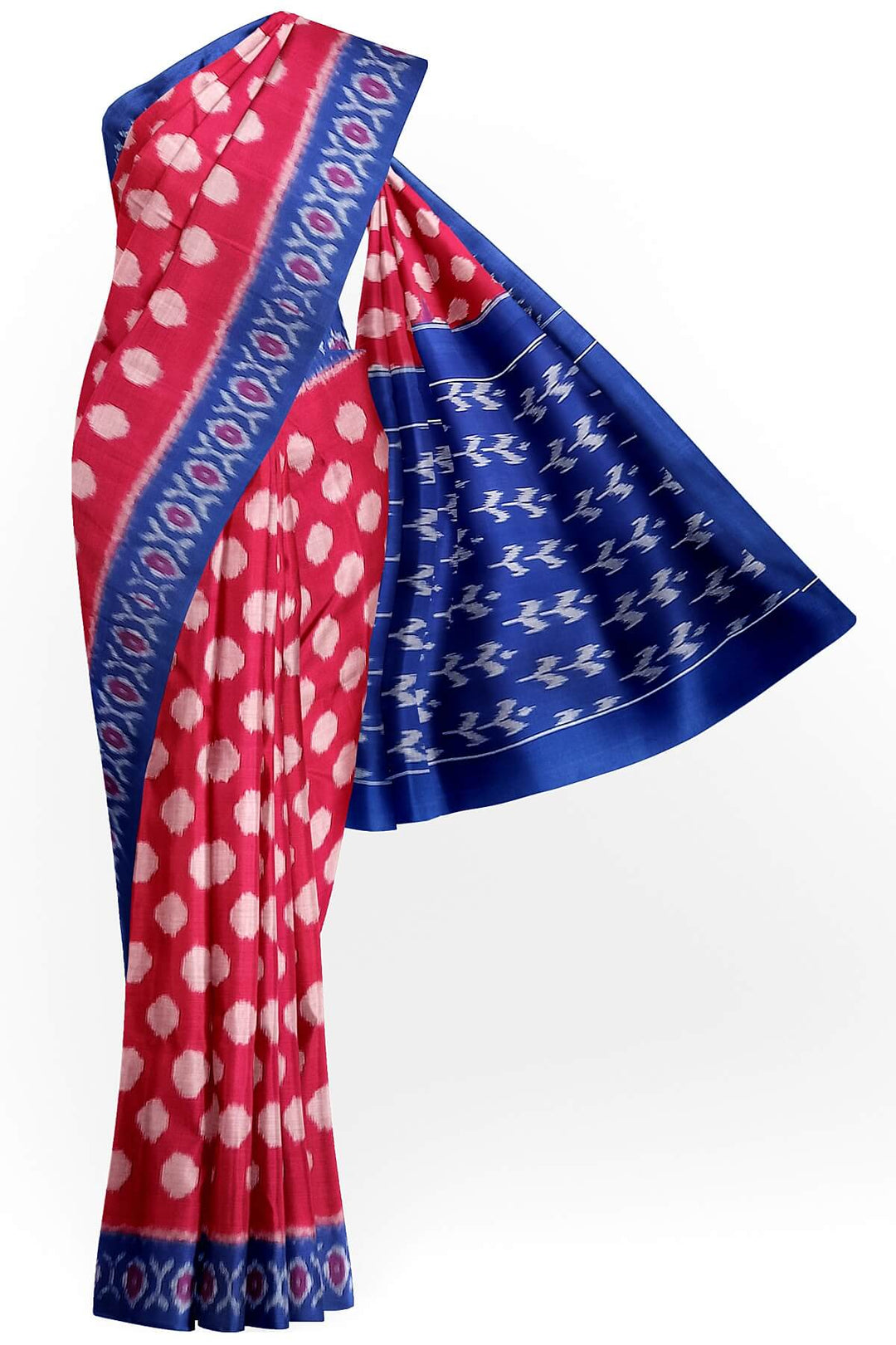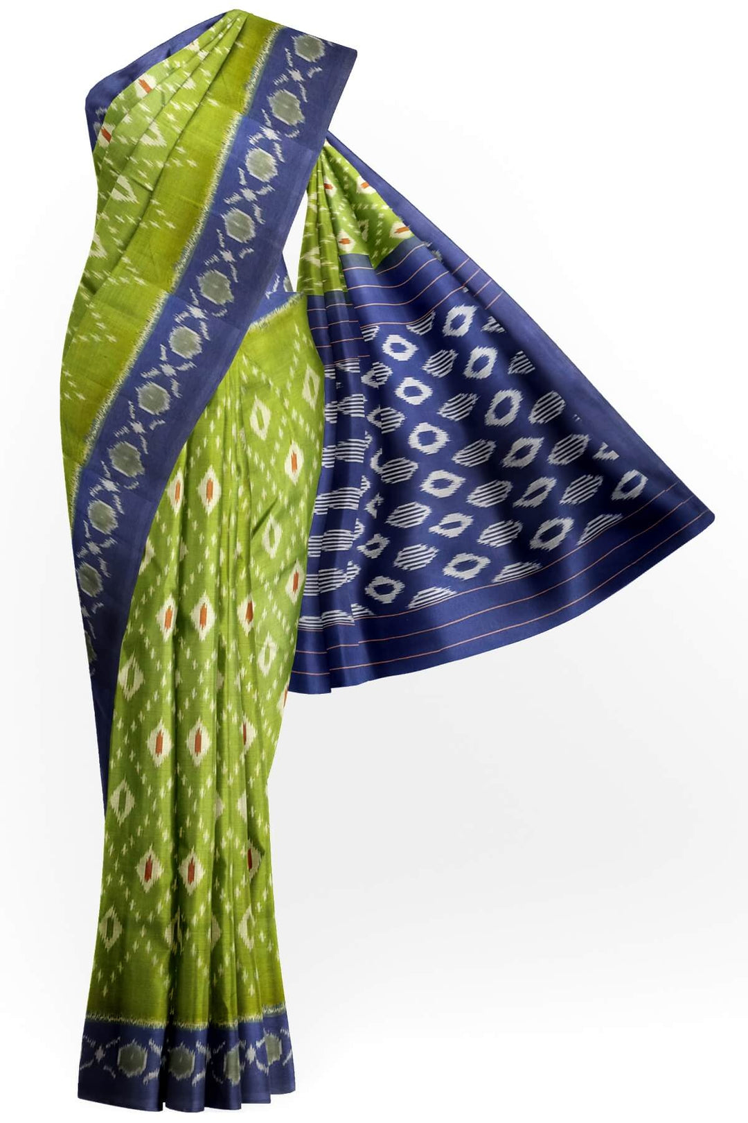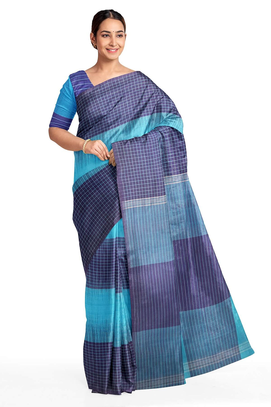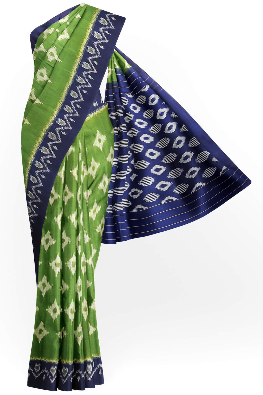Handwoven ikat pure cotton saree in blue in 4 motif telia pattern